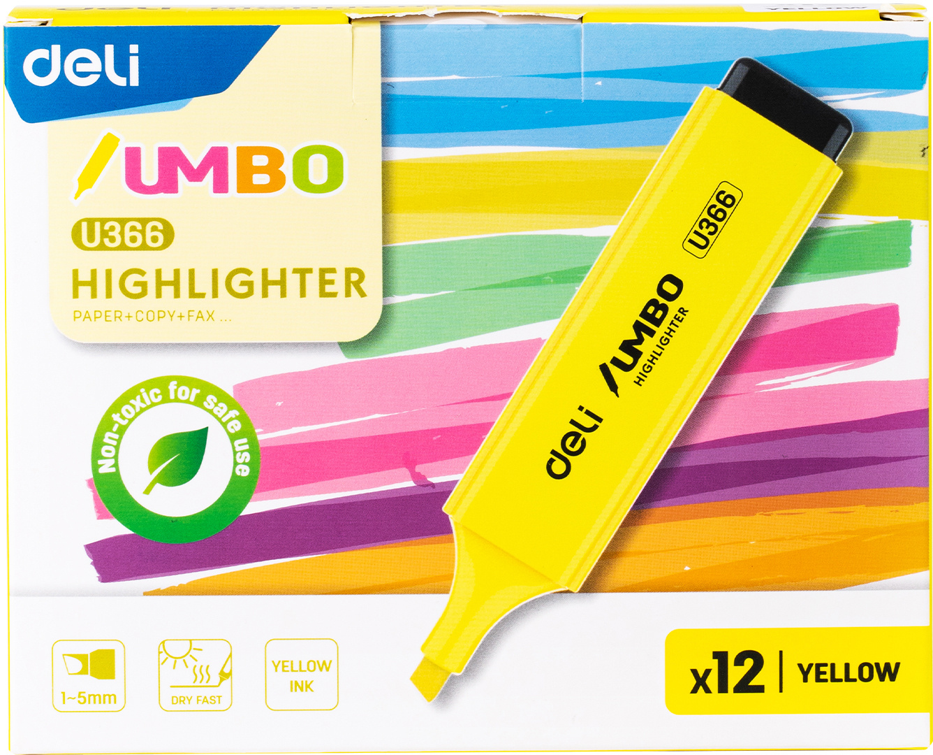 Текстовыделитель Deli EU366-YL Jumbo скошенный пиш. наконечник 1-5мм желтый (12 шт. в упаковке)
