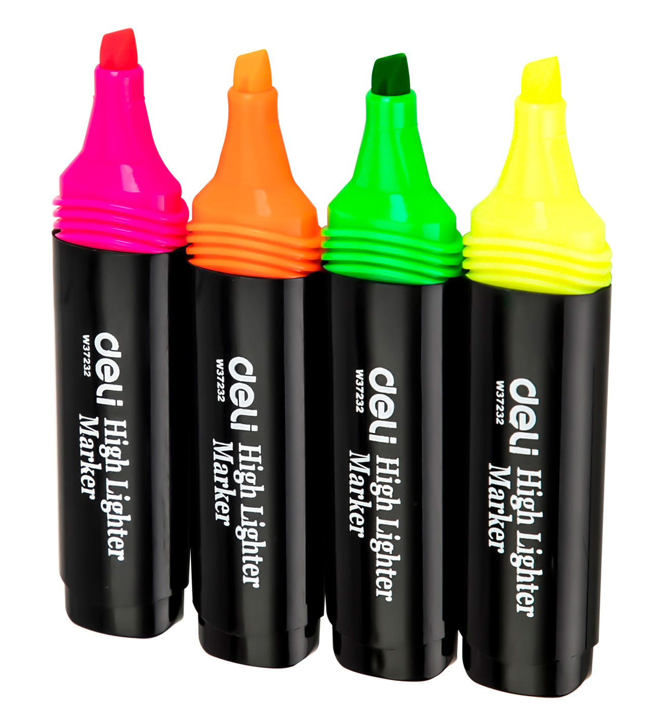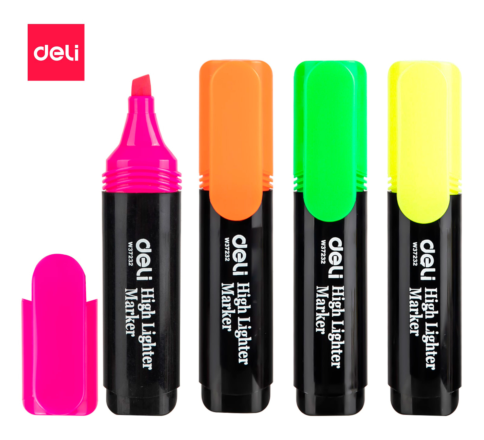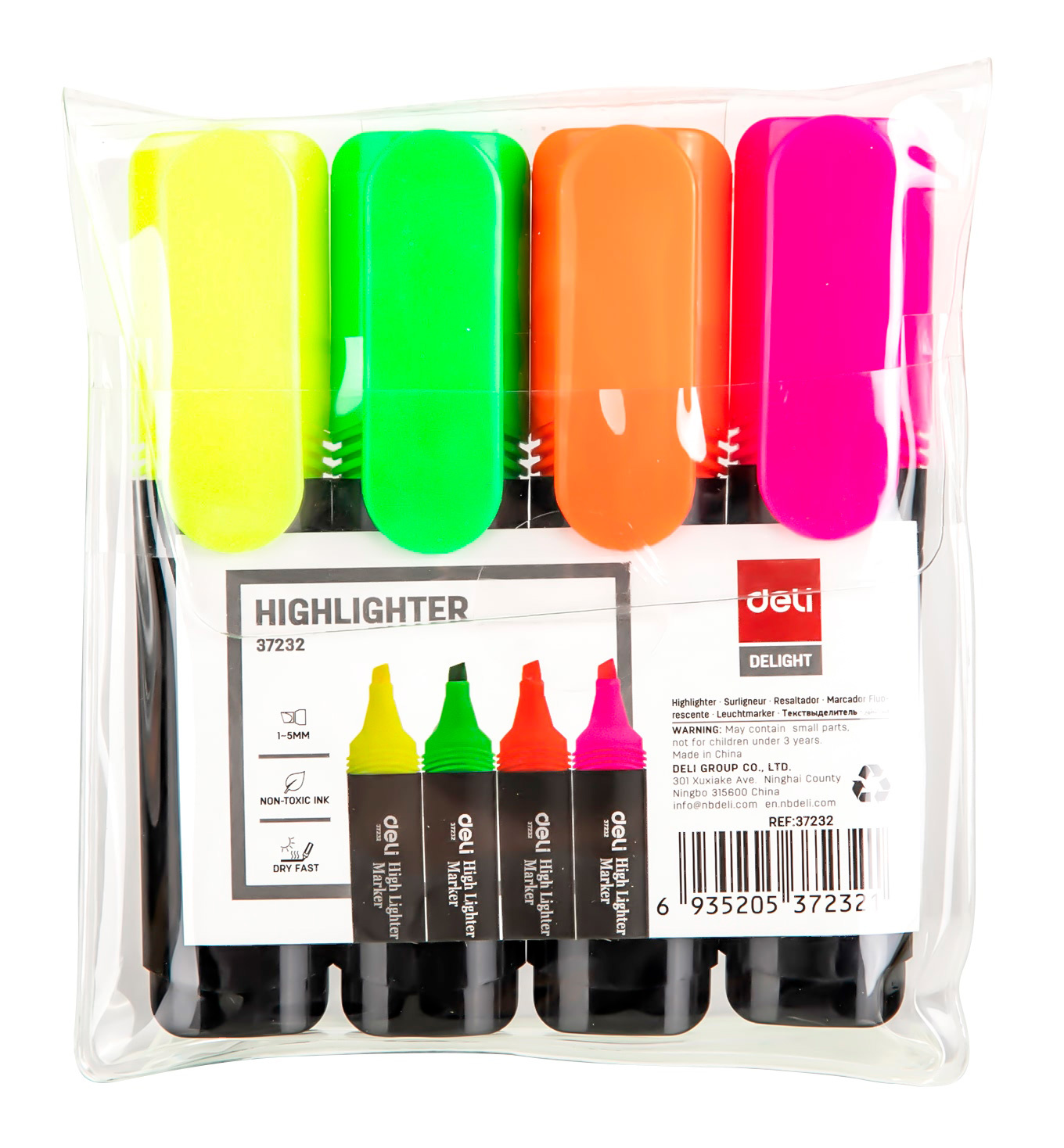 Набор текстовыделителей Deli E37232 Delight скошенный пиш. наконечник 1-5мм 4цв. пакет с европодвесом (4шт.) (12 шт. в упаковке)