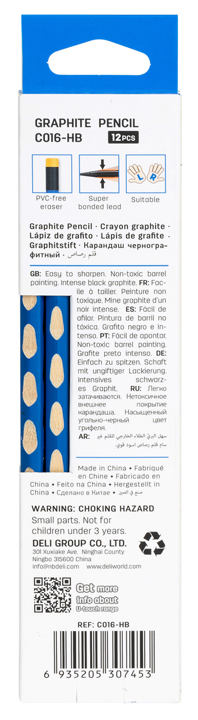 Карандаш ч/г Deli EC016-HB U-Touch HB трехгран. (12шт) (12 шт. в упаковке)