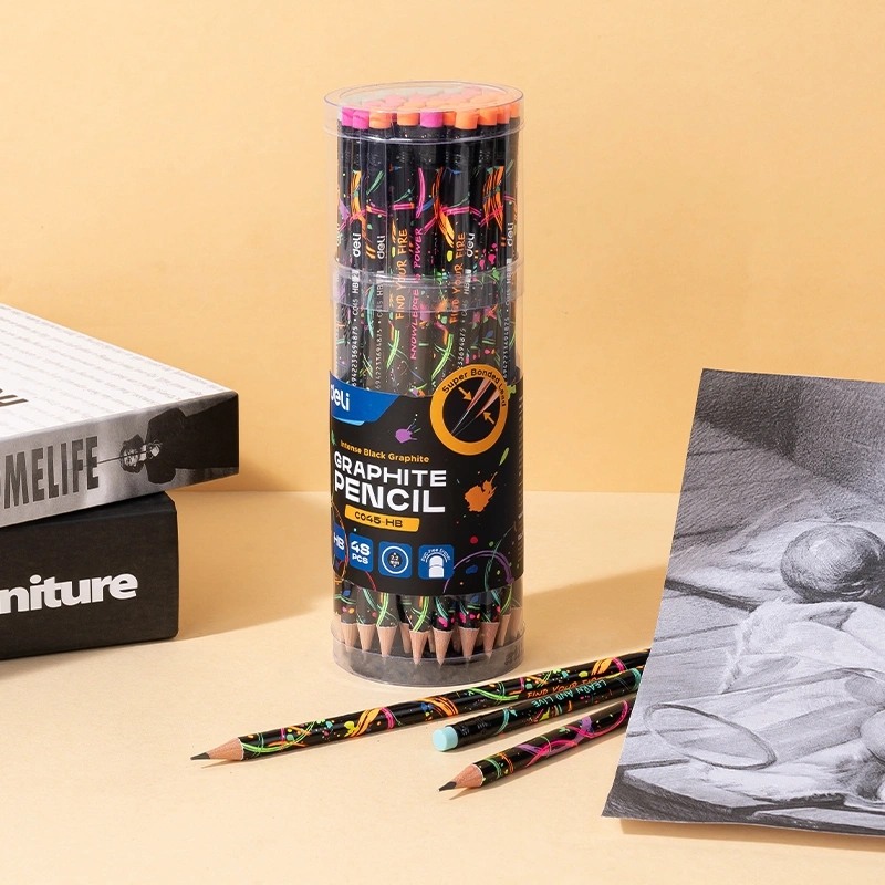 Карандаш ч/г Deli EC045-HB 2.2мм HB кругл. липа ассорти Ennovation texture ластик (48 шт. в упаковке)
