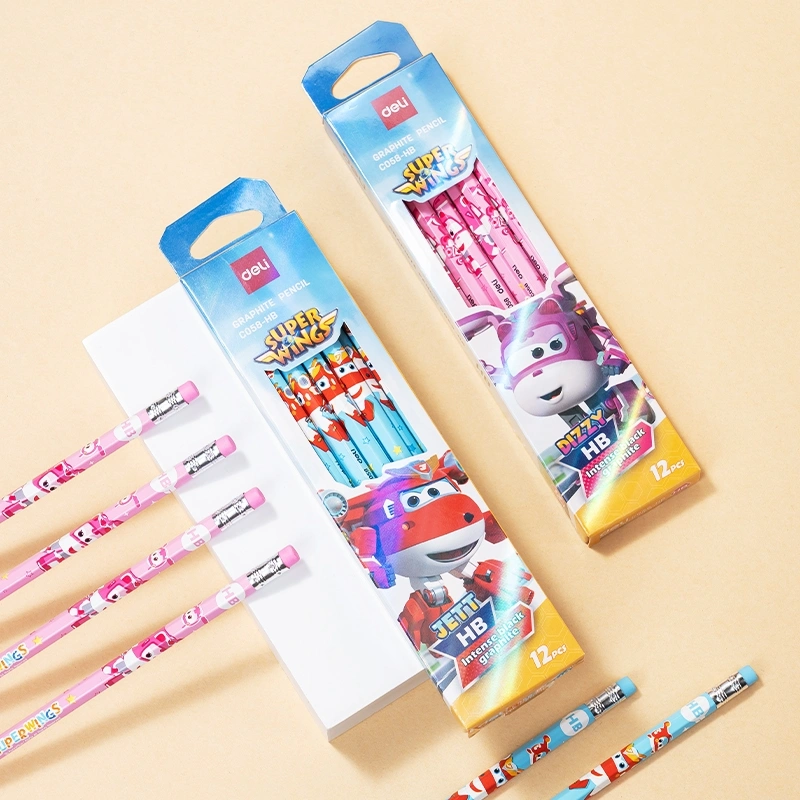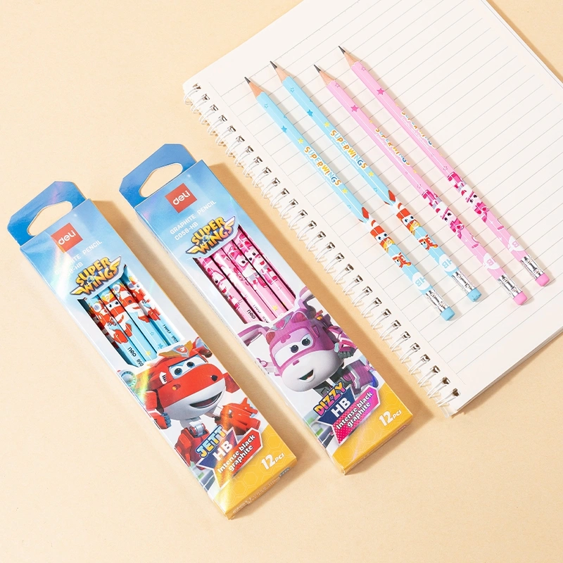 Карандаш ч/г Deli EC058-HB 2.2мм шестигран. тополь ассорти ластик
