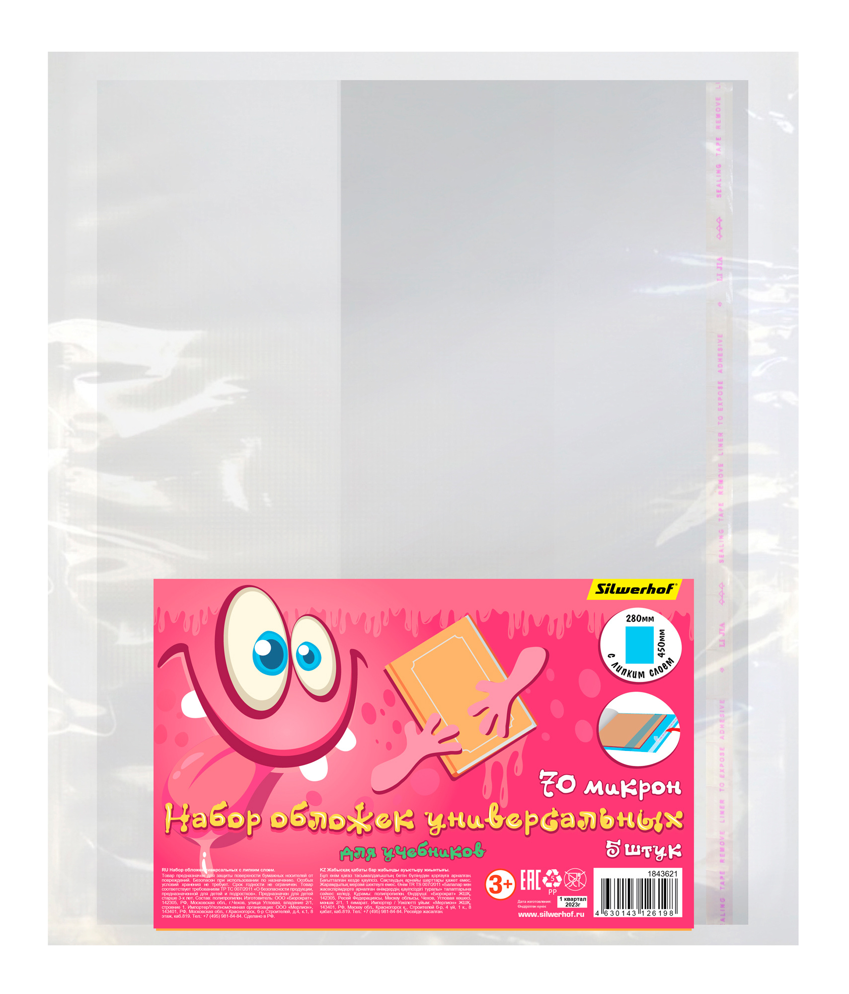 Обложка Silwerhof 382155 Монстрики для учебника с липк.сл. (набор 5шт) ПП 70мкм гладкая прозр. 280х450мм (20 шт. в упаковке)