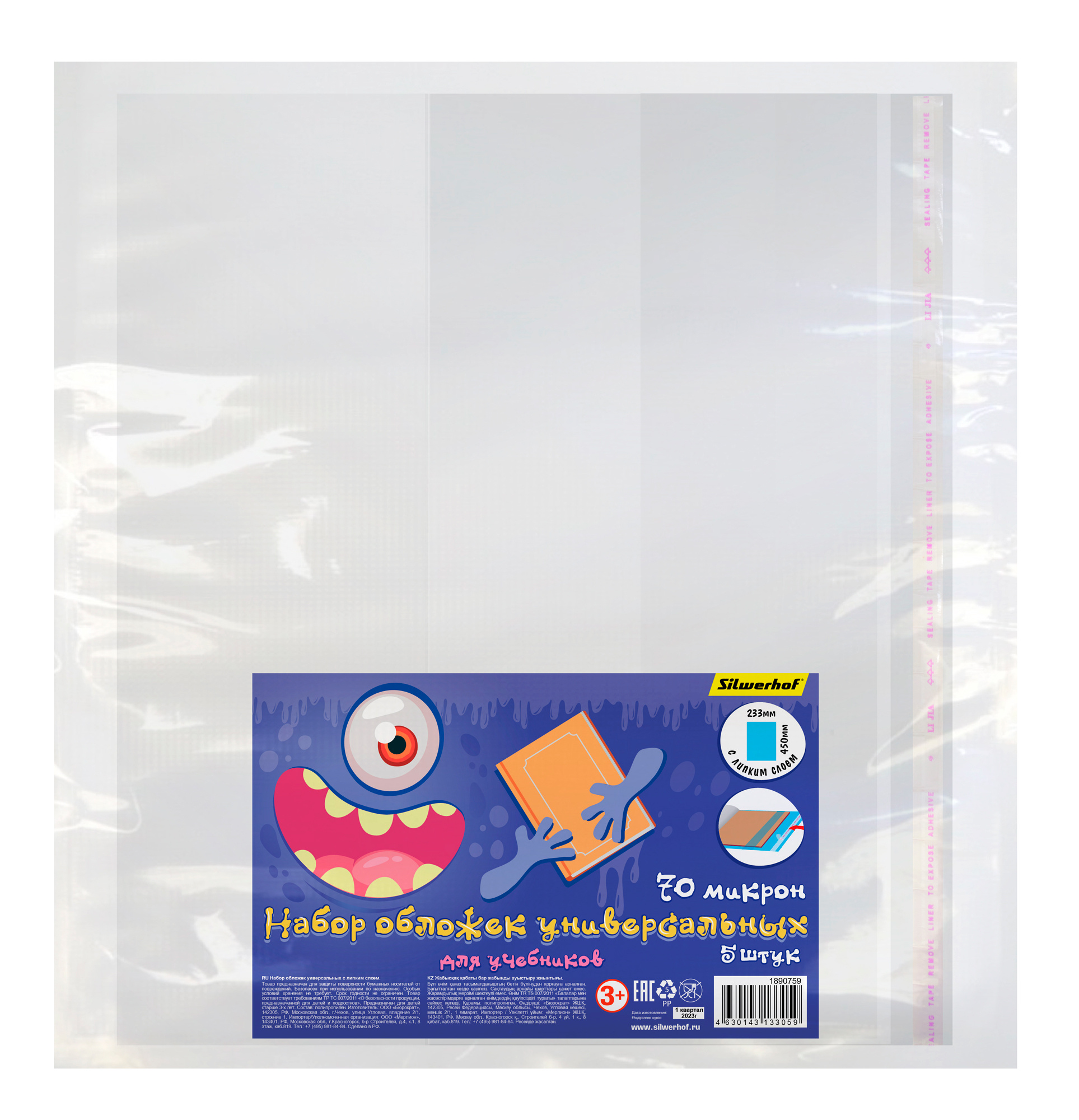 Обложка Silwerhof 382157 Монстрики с липк.сл. (набор 5шт) ПП 70мкм гладкая прозр. 233х450мм (20 шт. в упаковке)