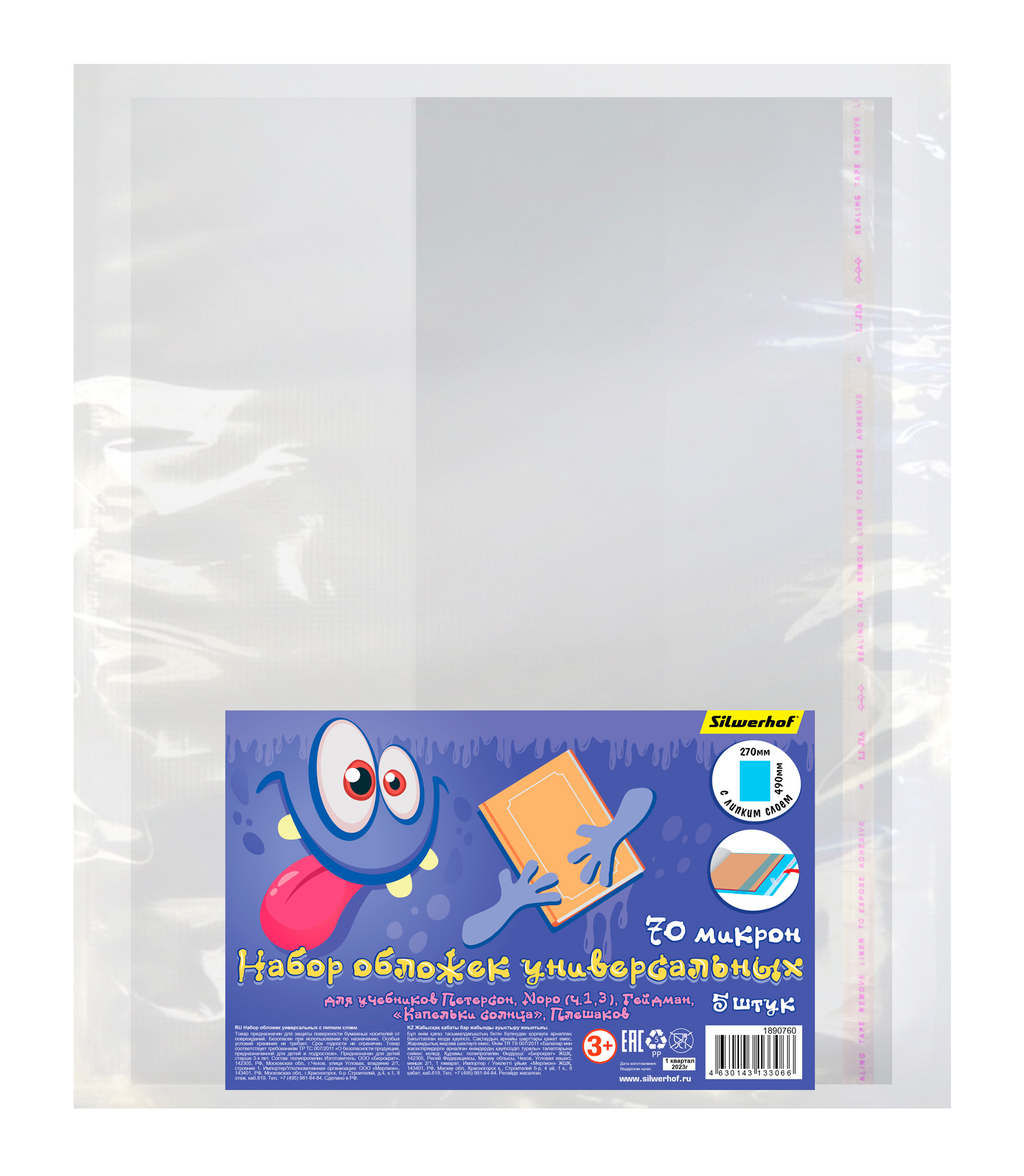 Обложка Silwerhof 382158 Монстрики с липк.сл. (набор 5шт) ПП 70мкм гладкая прозр. 270х490мм (20 шт. в упаковке)