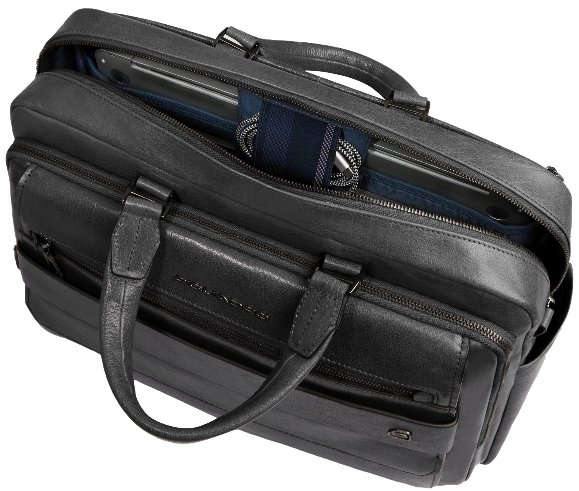 | Описание | Персонализируемая сумка для ноутбука из кожи с отделением для iPad®, амортизацией и защитой от RFID, карманами для AirPods® и зонта |