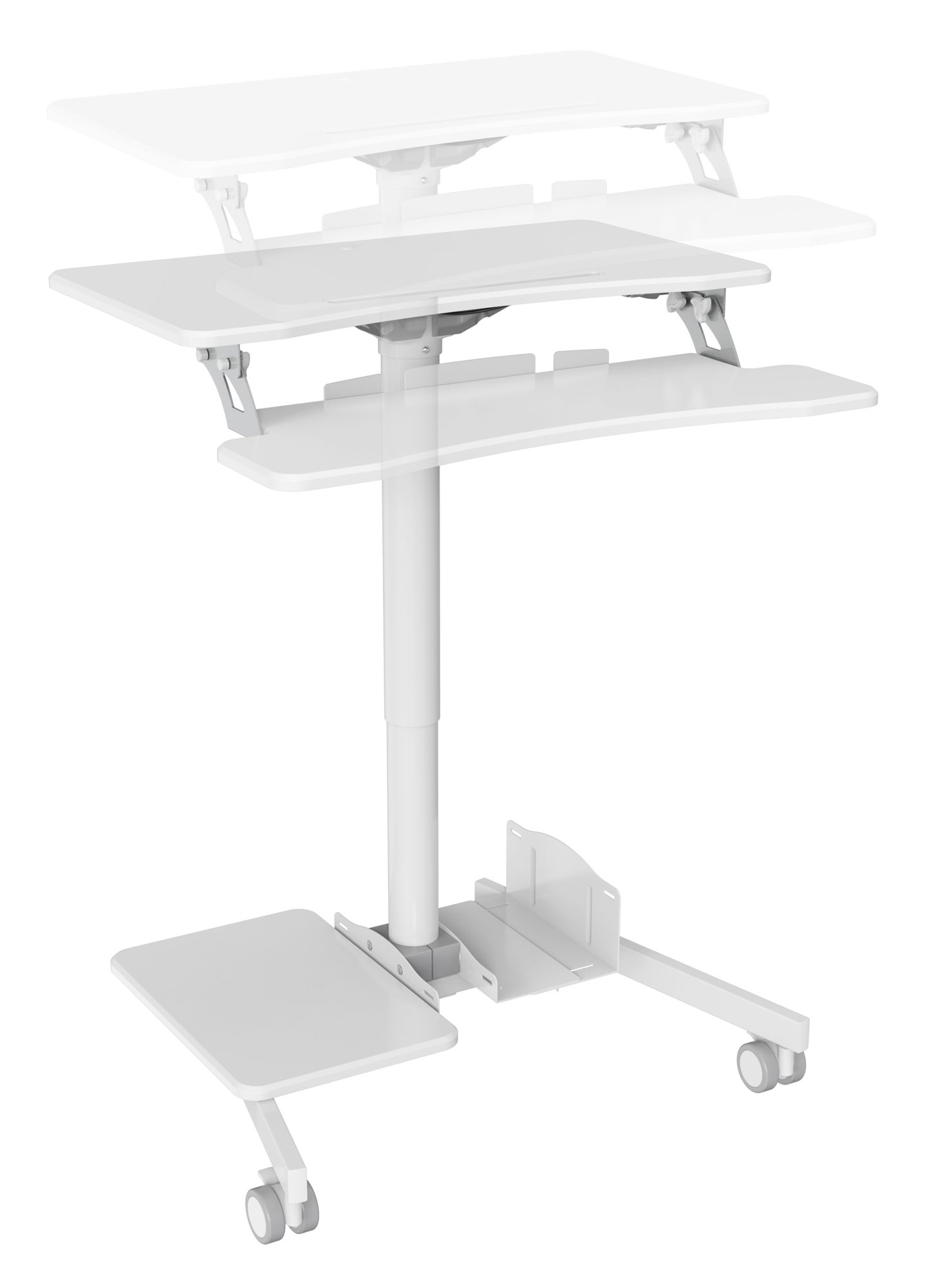 | Особенности | Простое управление: подъемный механизм плавно опускает и поднимает столешницу, можно остановить в любом положении. Управление при помощи одного рычага. Наличие 4 колес обеспечивает маневренность, 2 колеса со стопором, для придания устойчивости. Выдвижная полка |