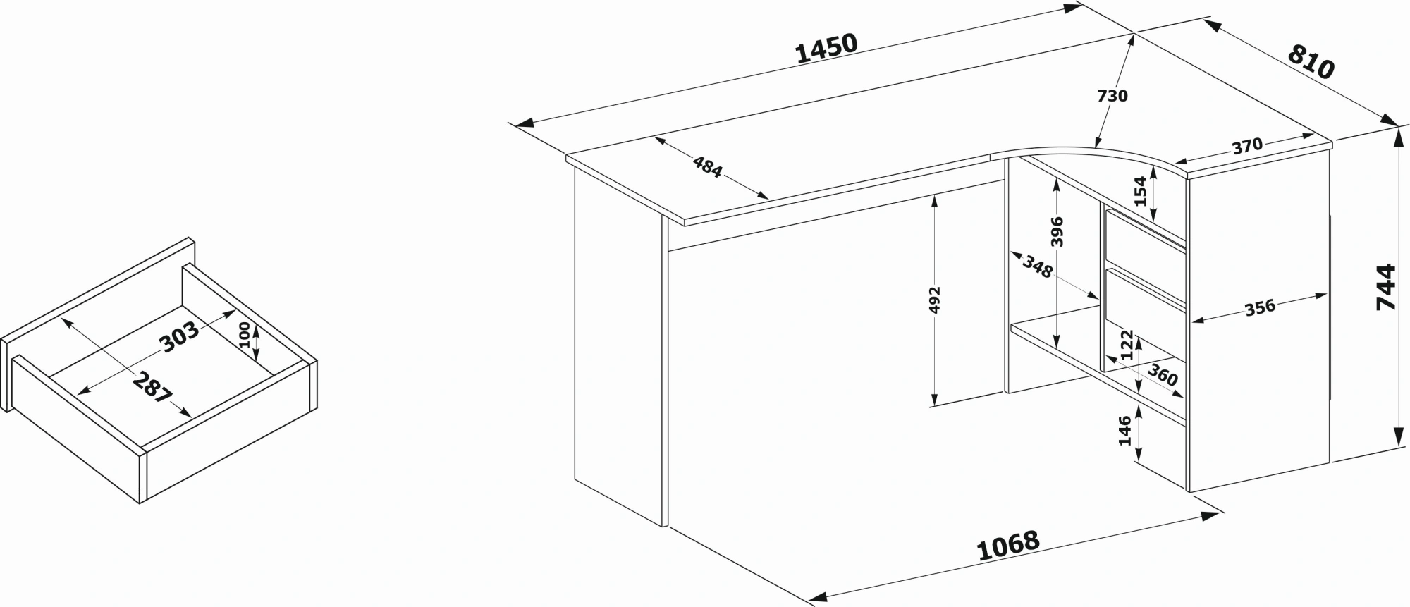 | Особенности | Материал: ЛДСП. Тип направляющих: шариковые полного выдвижения. Задняя стенка сделана из ДВП белого цвета. |