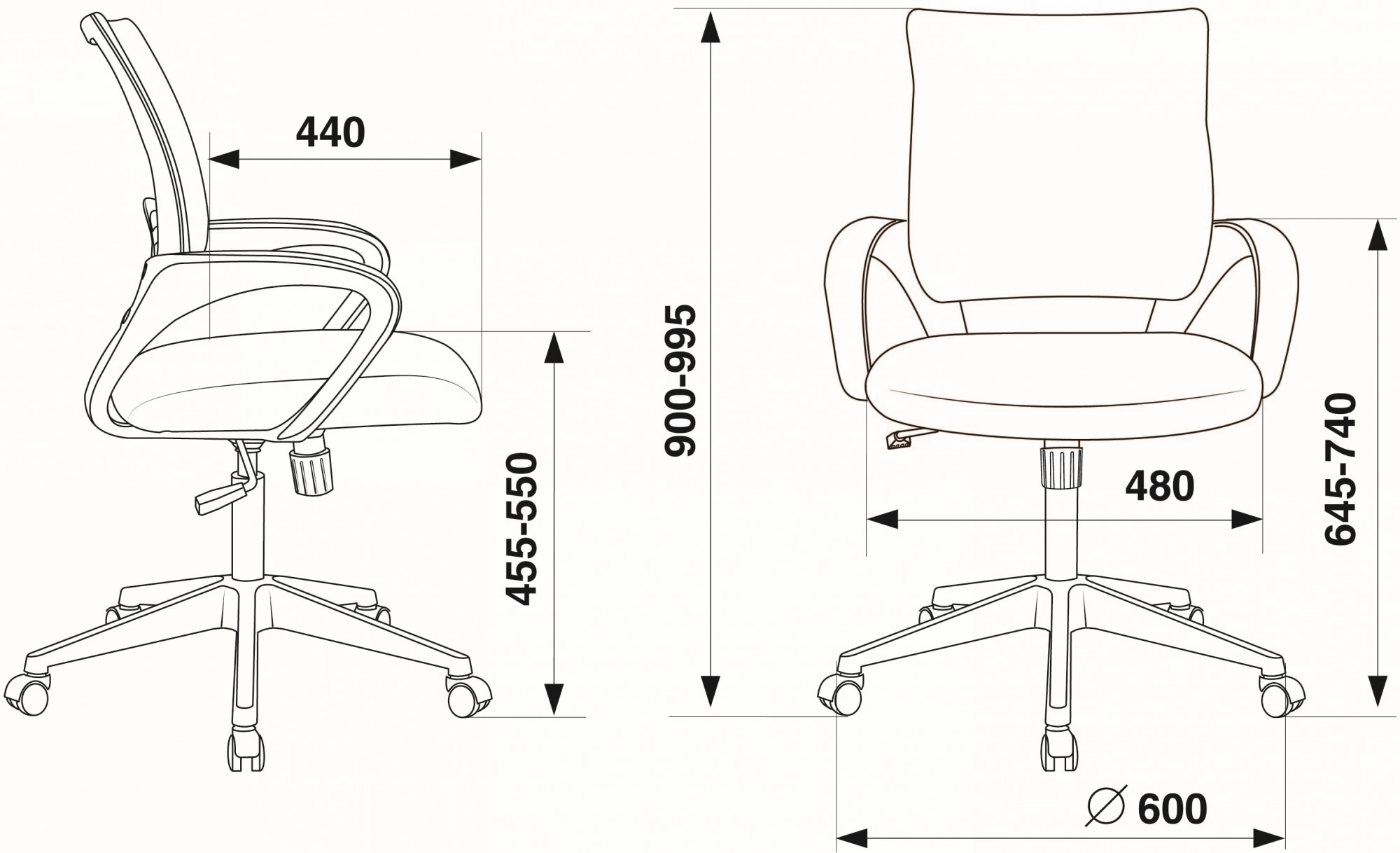 | Высота с подлокотниками MIN | 635 |