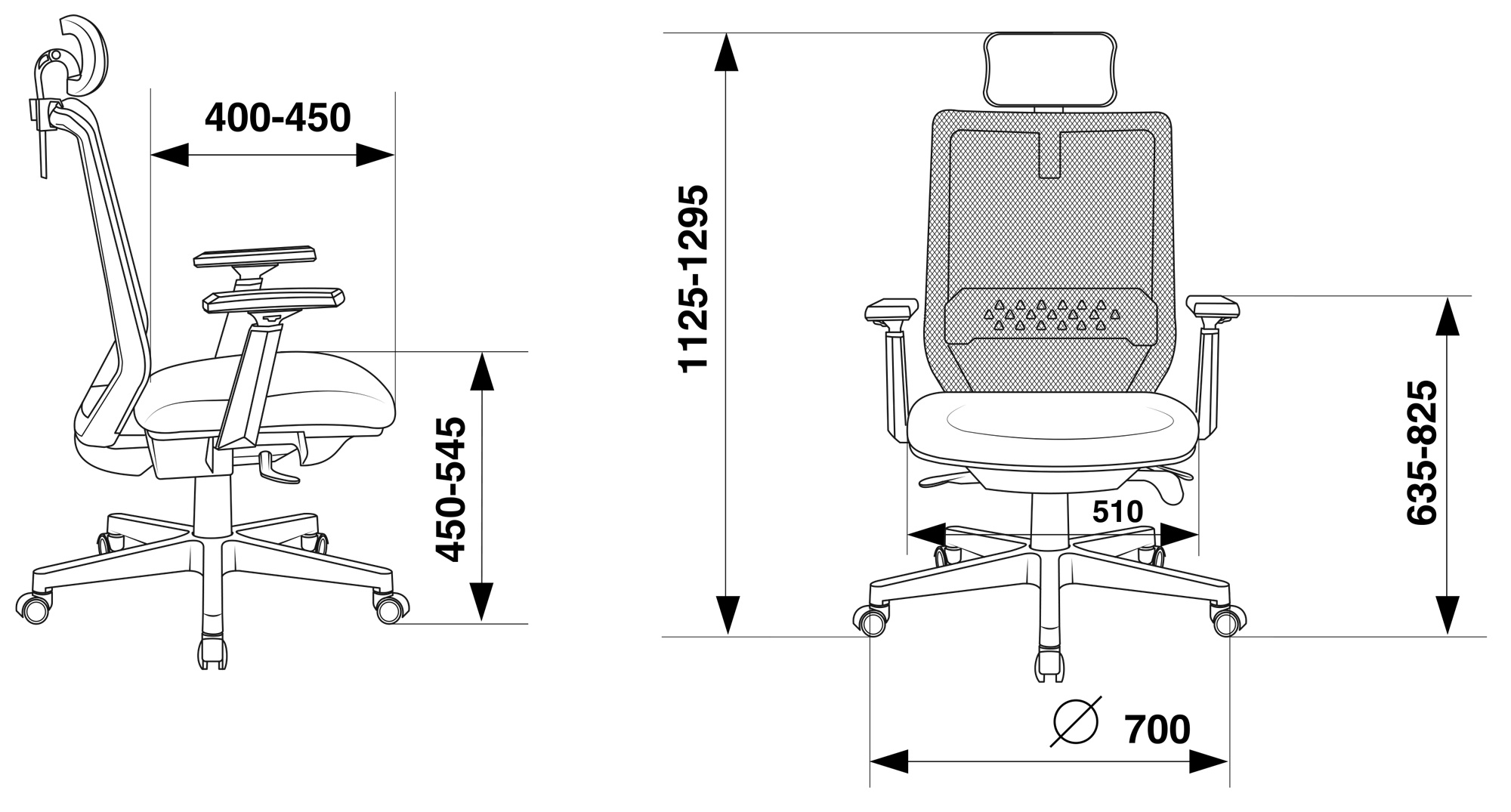 | Глубина сиденья MIN | 400 |