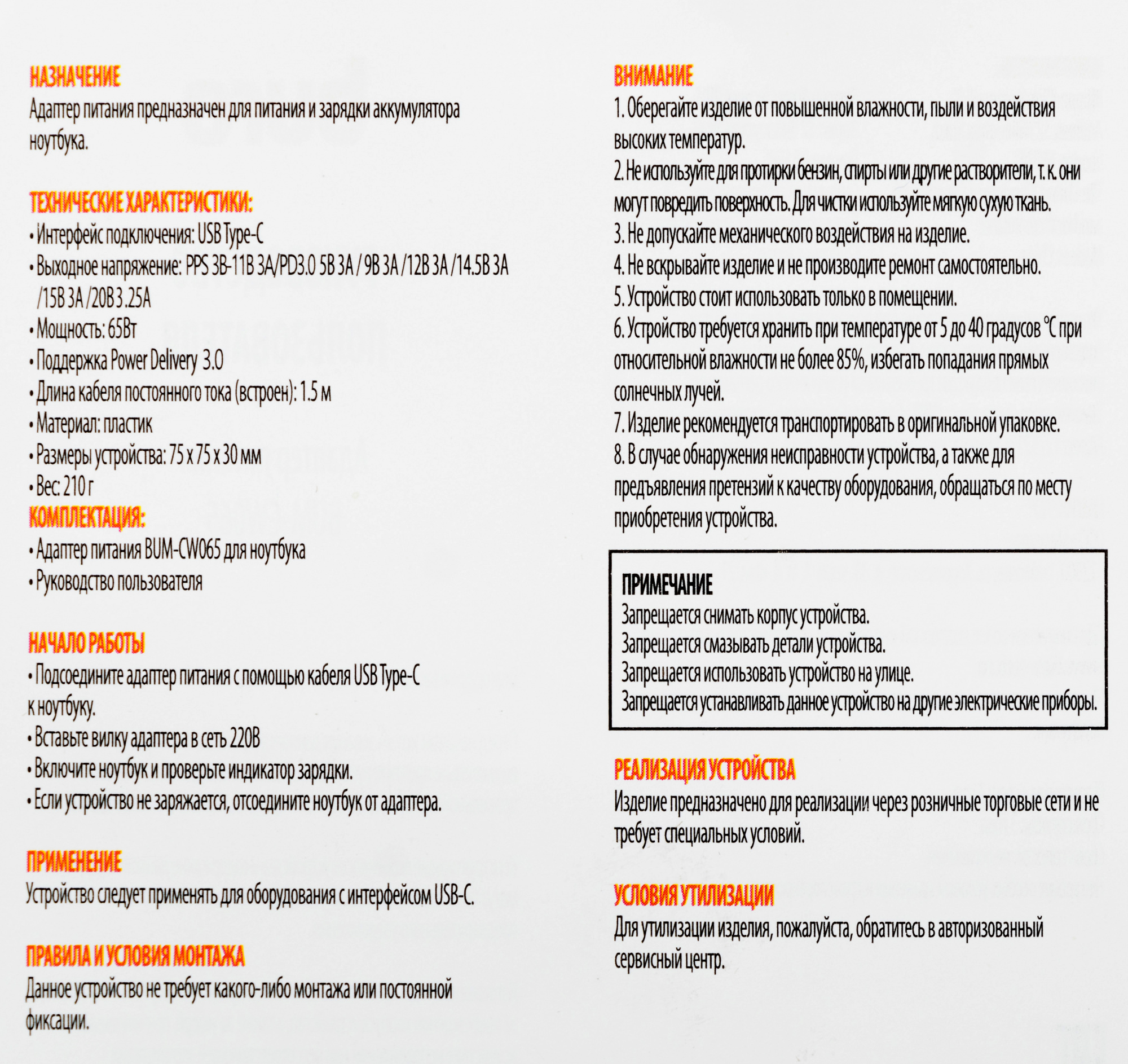 | Описание | Адаптер питания универсальный с разъемом USB Type-C и поддержкой PD 3.0 |