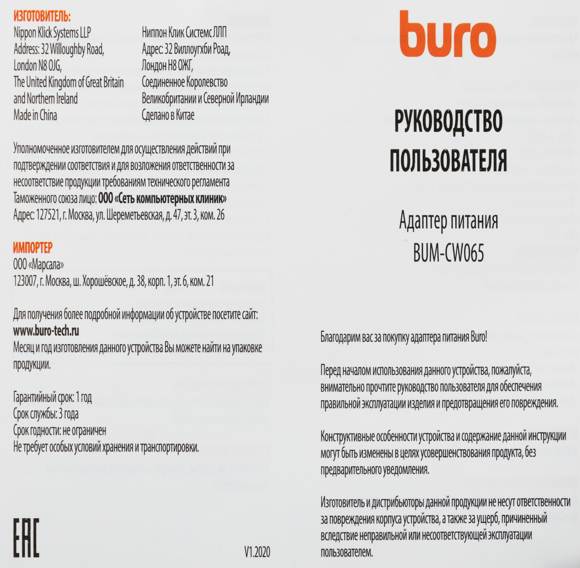 Блок питания Buro BUM-СW065 автоматический 65W 5V-20V 3.25A от бытовой электросети