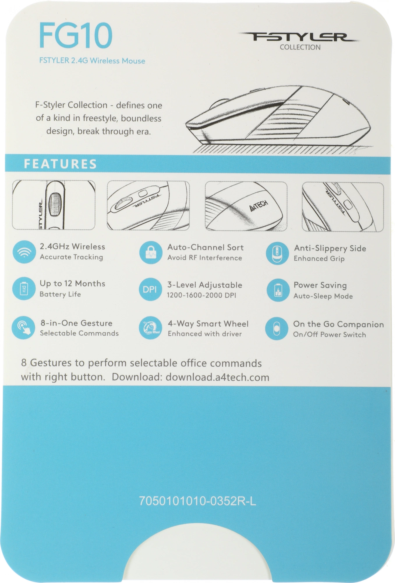 Мышь A4Tech Fstyler FG10 белый/серый оптическая (2000dpi) беспроводная USB (4but)