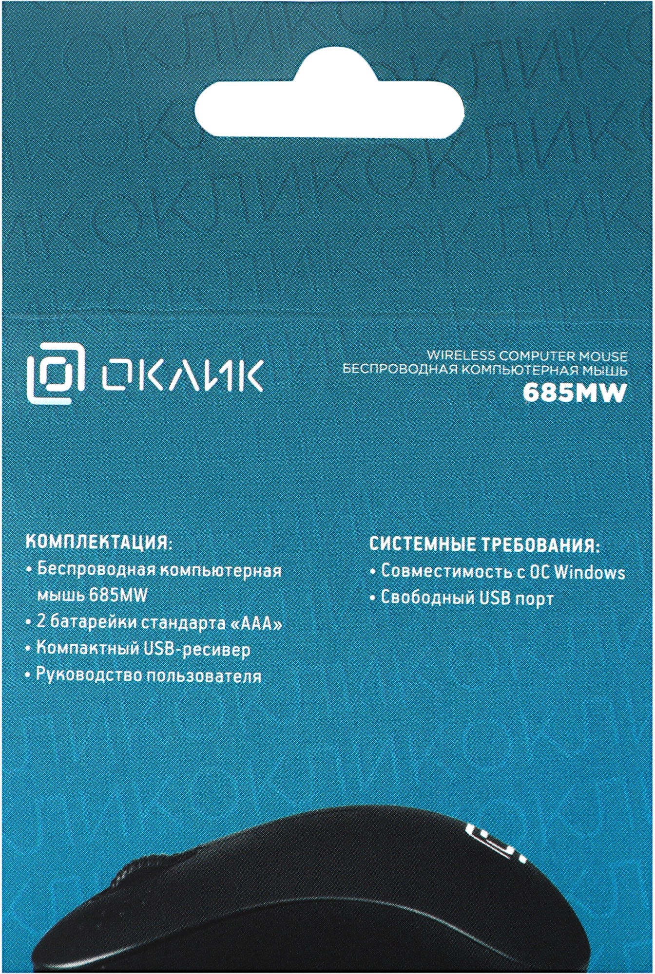 | Комплектация | Беспроводная компьютерная мышь 685MW, 2 батарейки ААА, Компактный USB-ресивер, убирающийся в корпус мыши. |