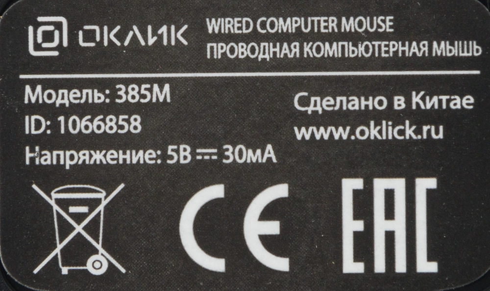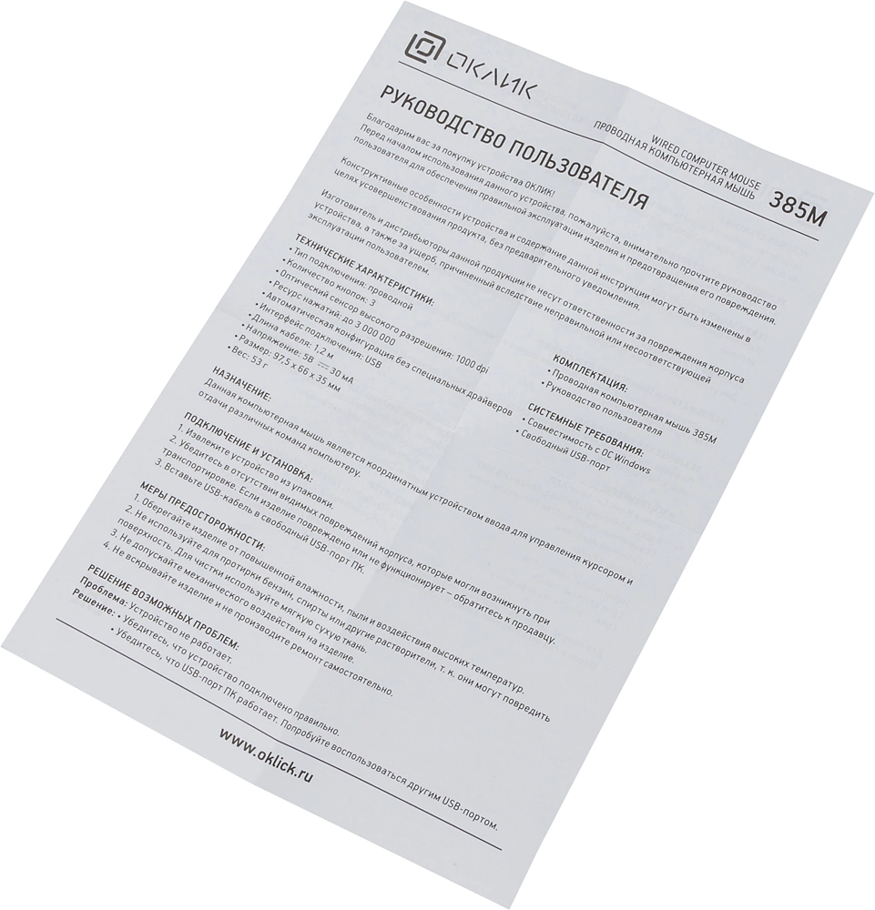 Мышь Оклик 385M черный оптическая (1000dpi) USB для ноутбука (3but)
