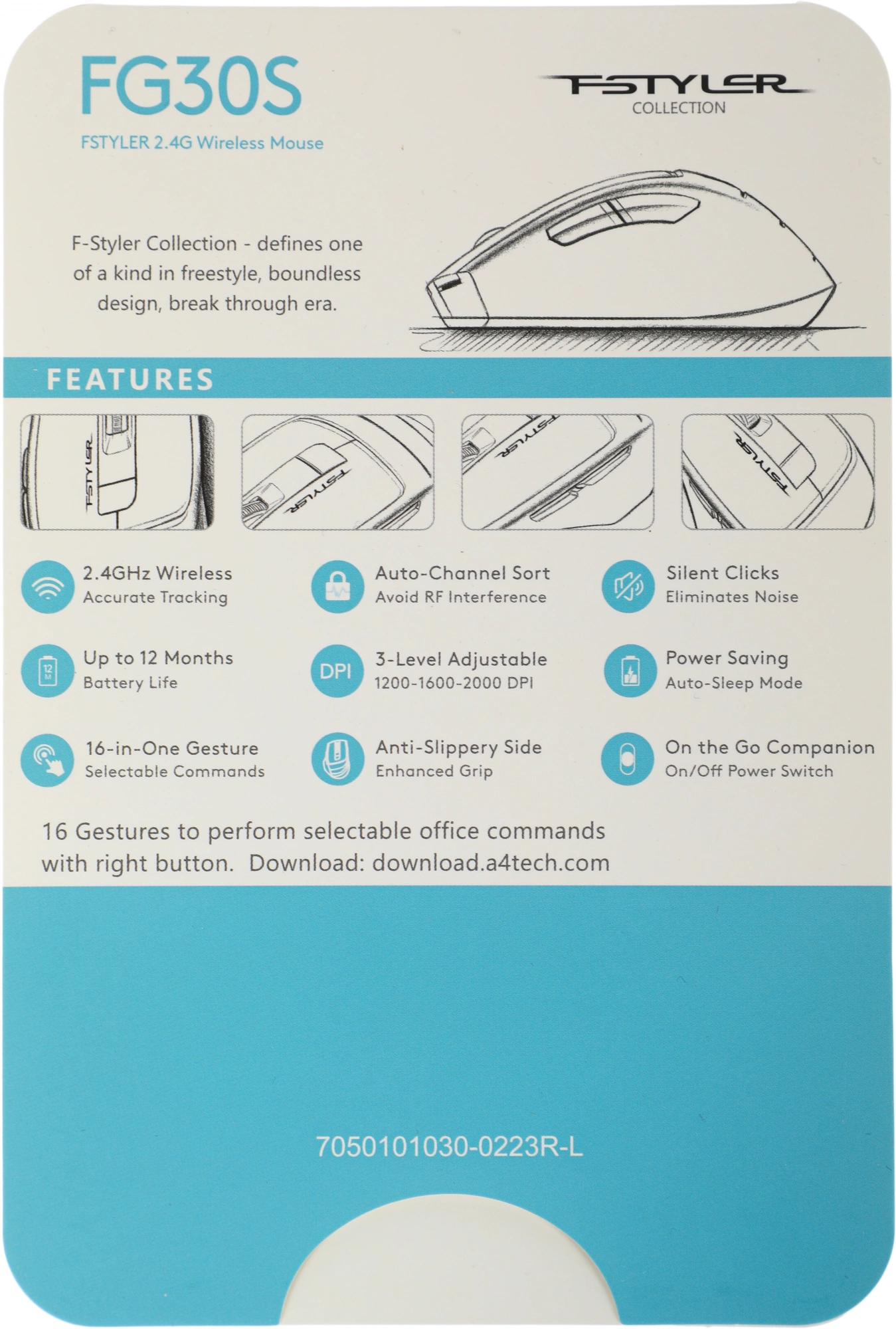 Мышь A4Tech Fstyler FG30S серый/оранжевый оптическая (2000dpi) silent беспроводная USB (6but)