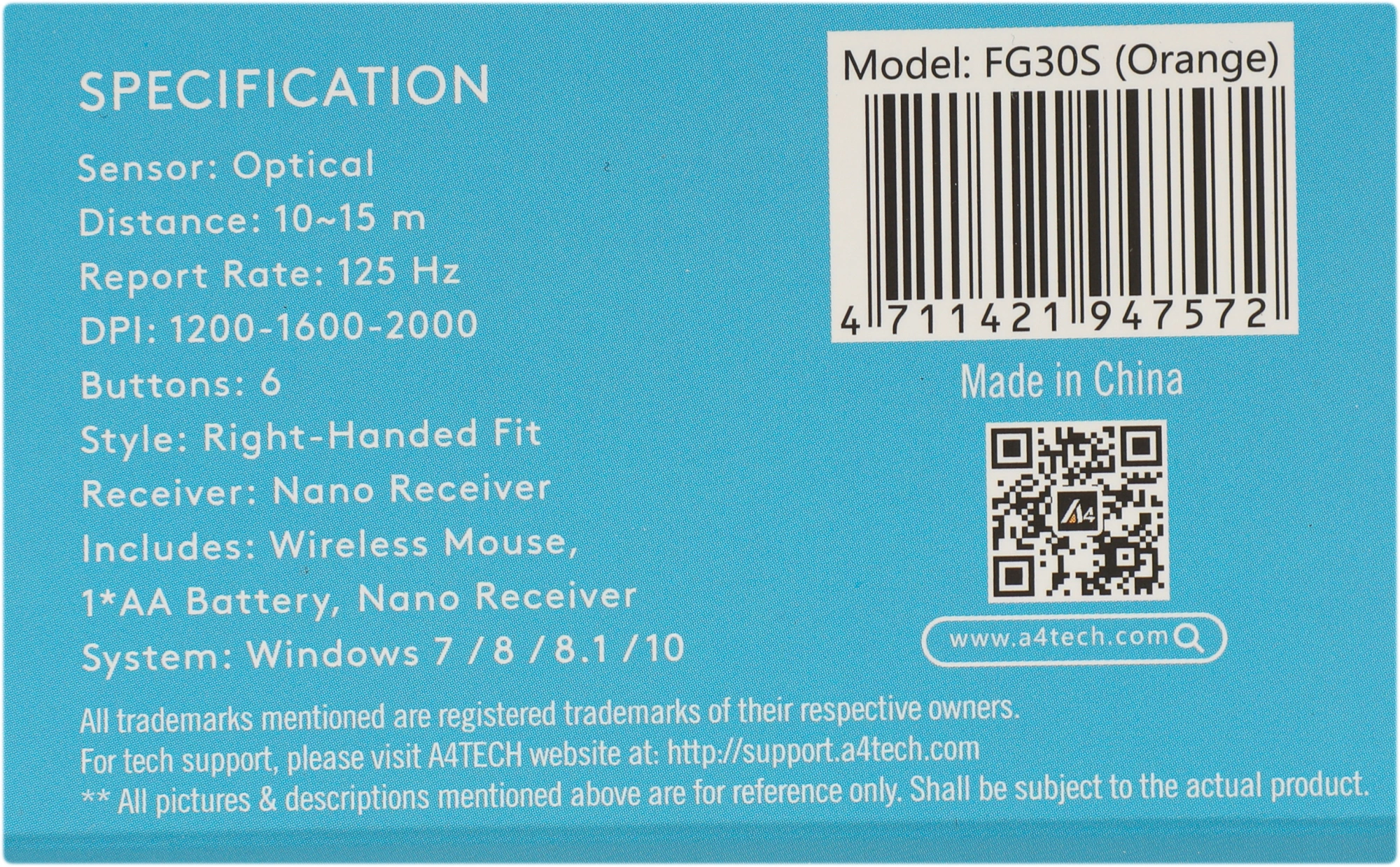 | PartNumber/Артикул Производителя | FG30S ORANGE |
