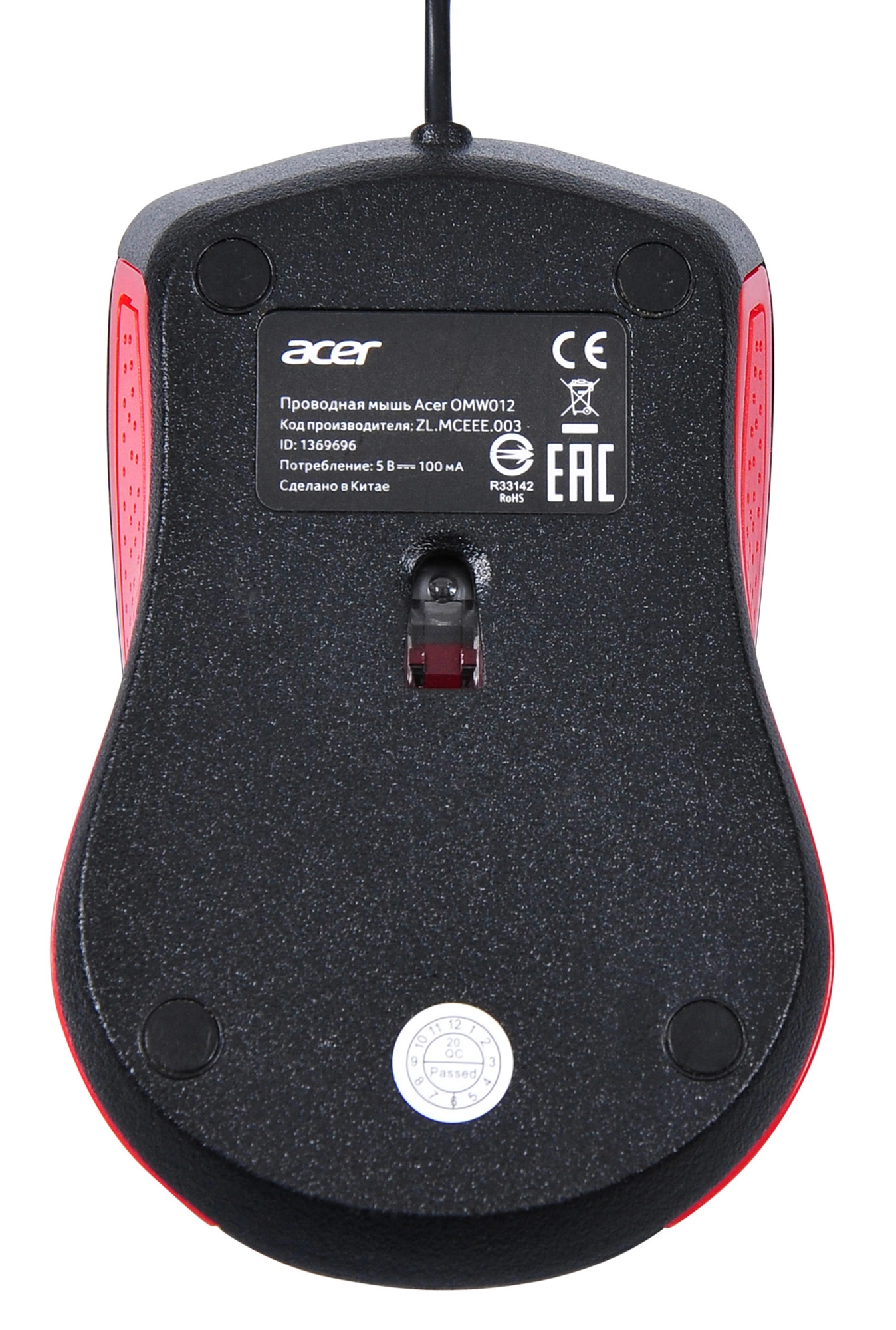 Мышь Acer OMW012 черный/красный оптическая (1200dpi) USB (3but)