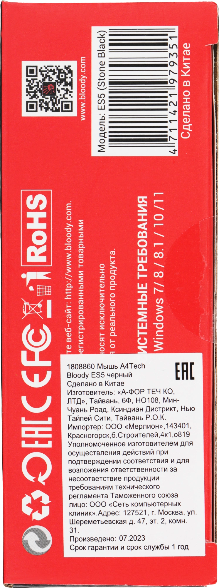 | Размеры мыши | 65x125x43мм |