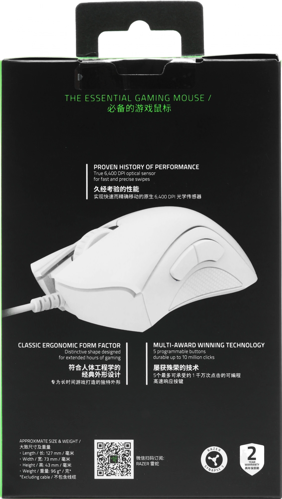 Мышь Razer DeathAdder Essential белый оптическая (6400dpi) USB