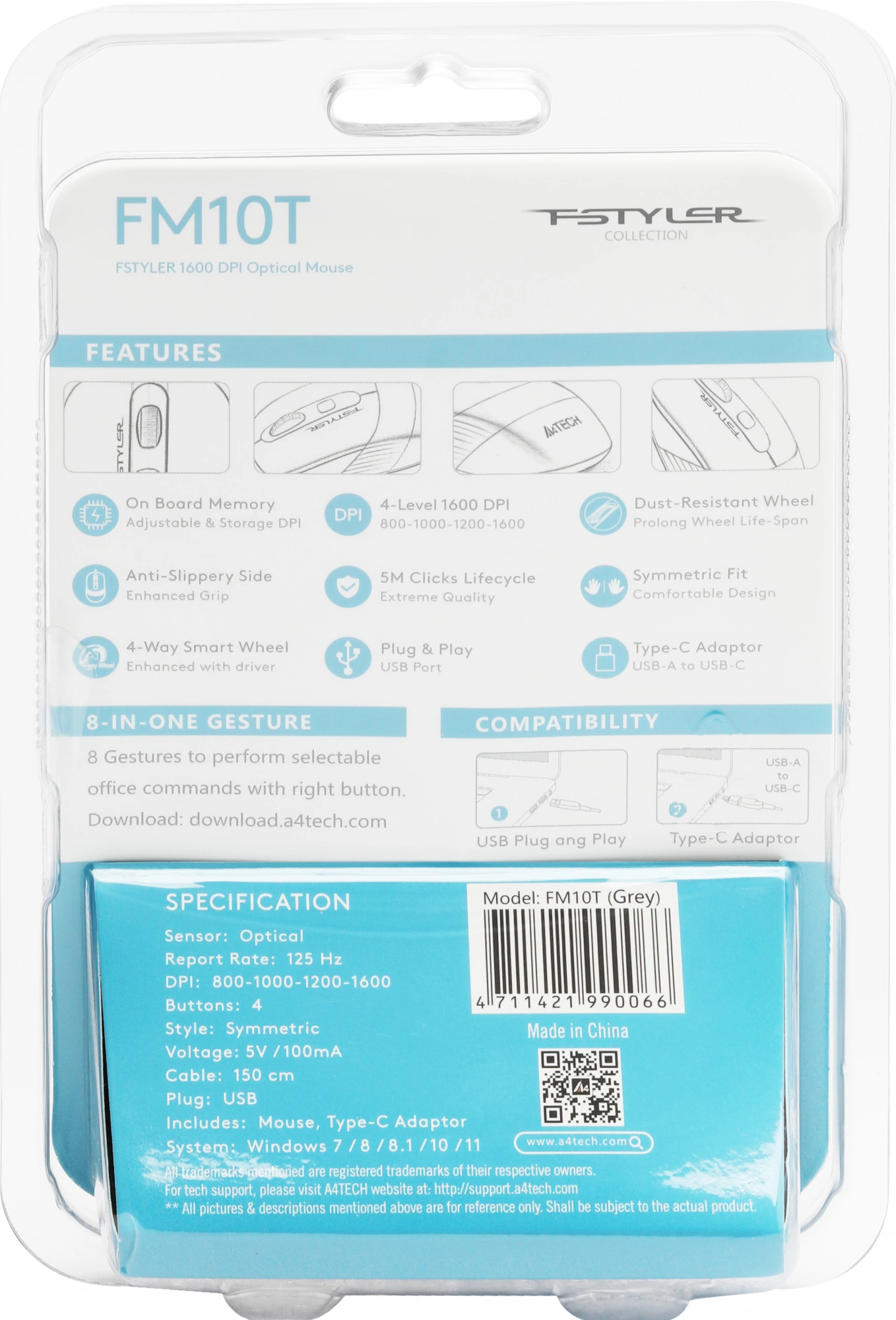 Мышь A4Tech Fstyler FM10T серый оптическая (1600dpi) USB для ноутбука (4but)