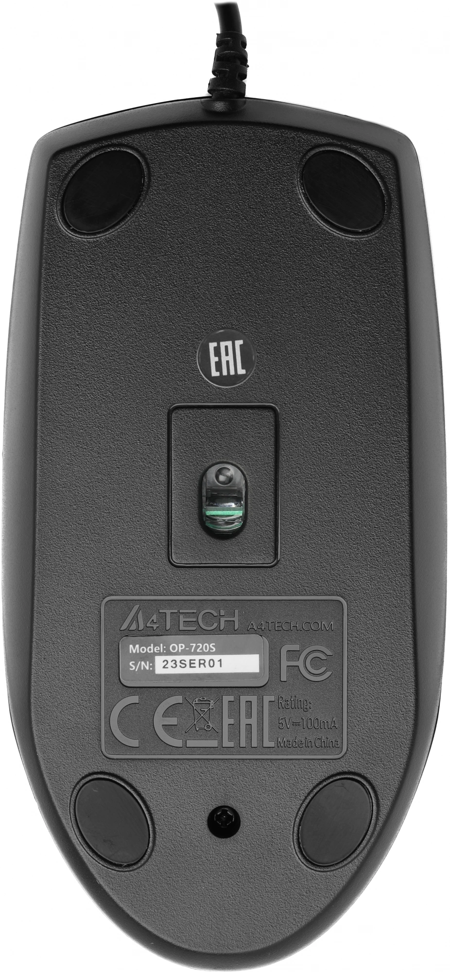 Мышь A4Tech OP-720S черный оптическая (1200dpi) silent USB (3but)