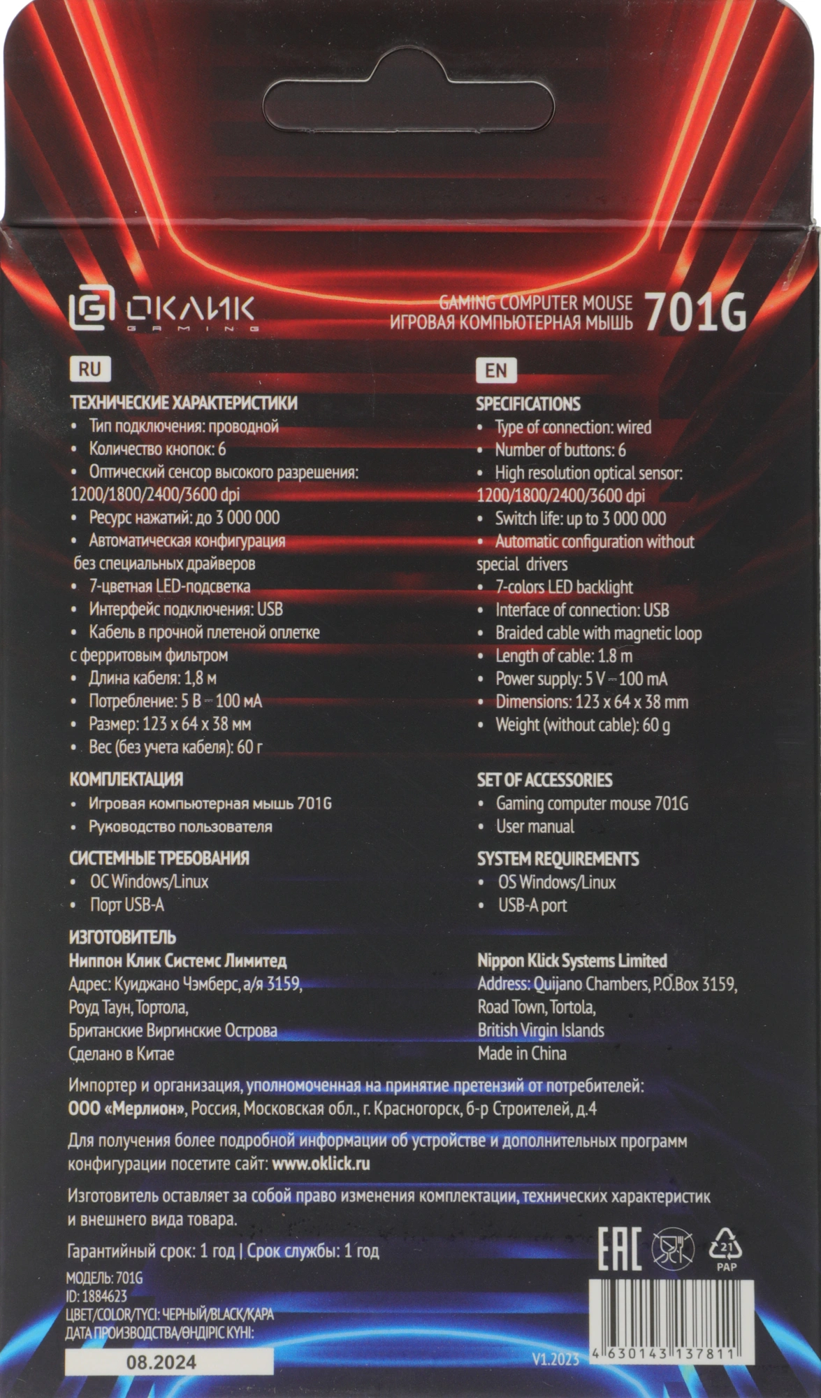 | Особенности | Удобная полноразмерная мышь подходящая как для игры так и для работы с офисными приложениями. 6 кнопок, возможность выбора оптимального разрешения, покрытие soft-touch, многоцветная, подсветка, кабель в оплетке с ферритовым фильтром. Специальное ПО на сайте производителя расширяющее возможности мыши |