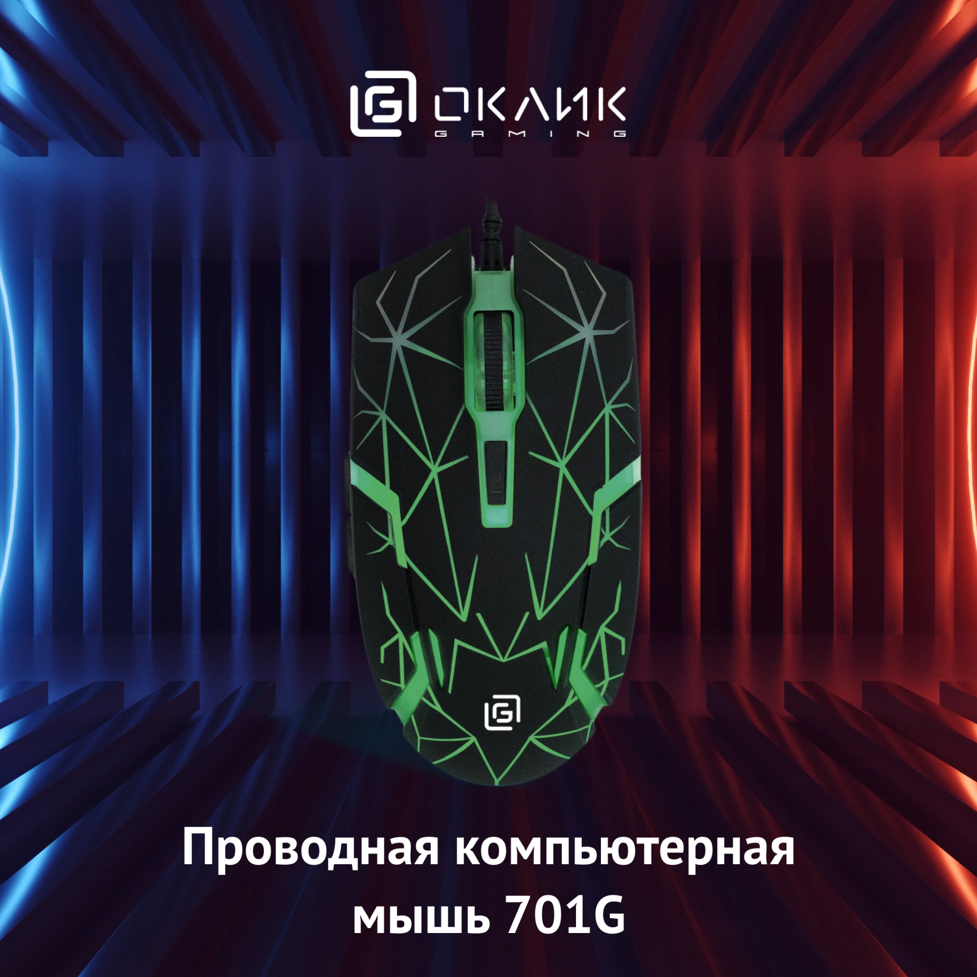 Мышь Оклик 701G черный оптическая (3600dpi) USB для ноутбука (6but)