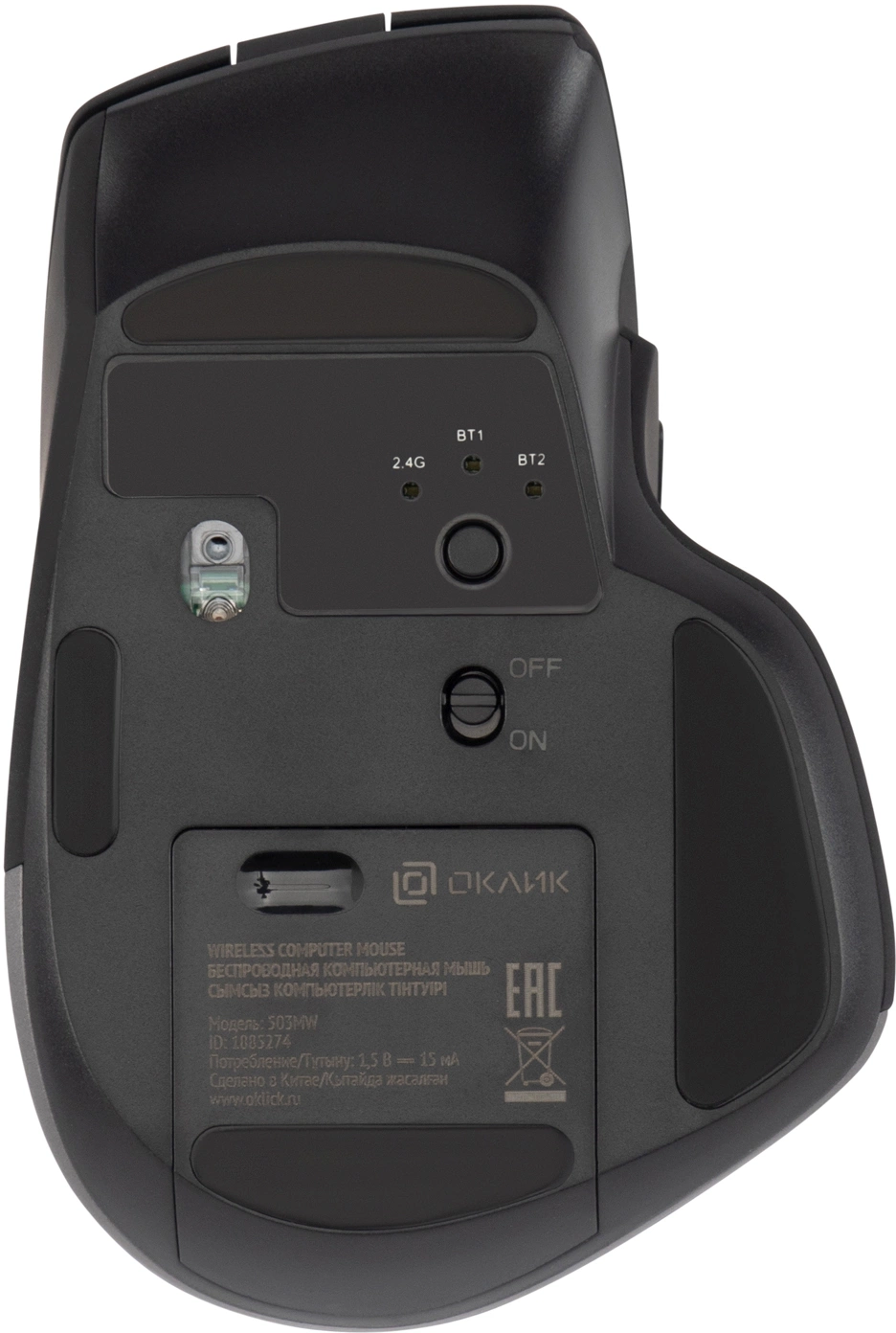 Мышь Оклик 503MW черный оптическая (2400dpi) беспроводная BT/Radio USB для ноутбука (6but)