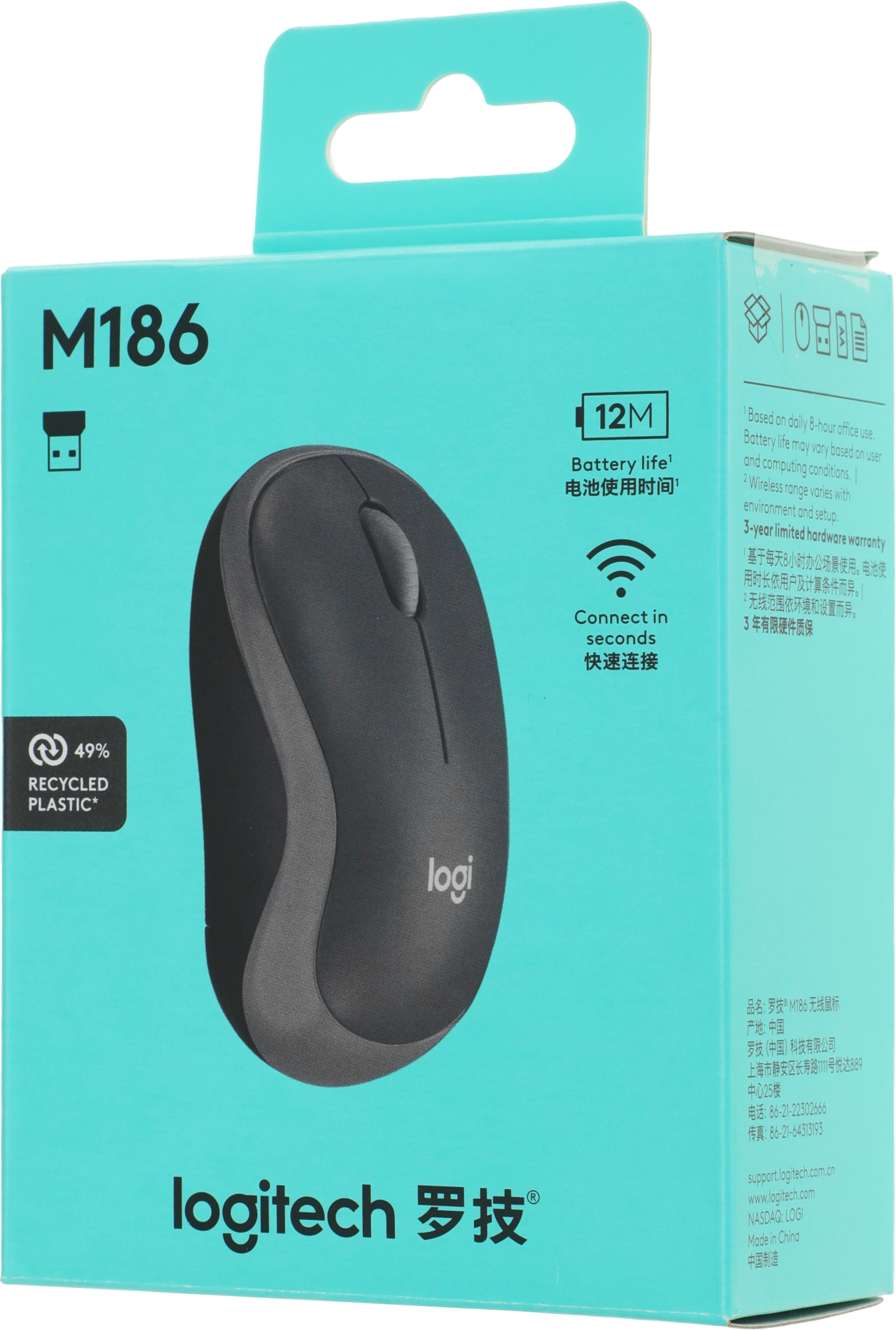 Мышь Logitech M186 черный/серый оптическая (1000dpi) беспроводная USB2.0 (2but)