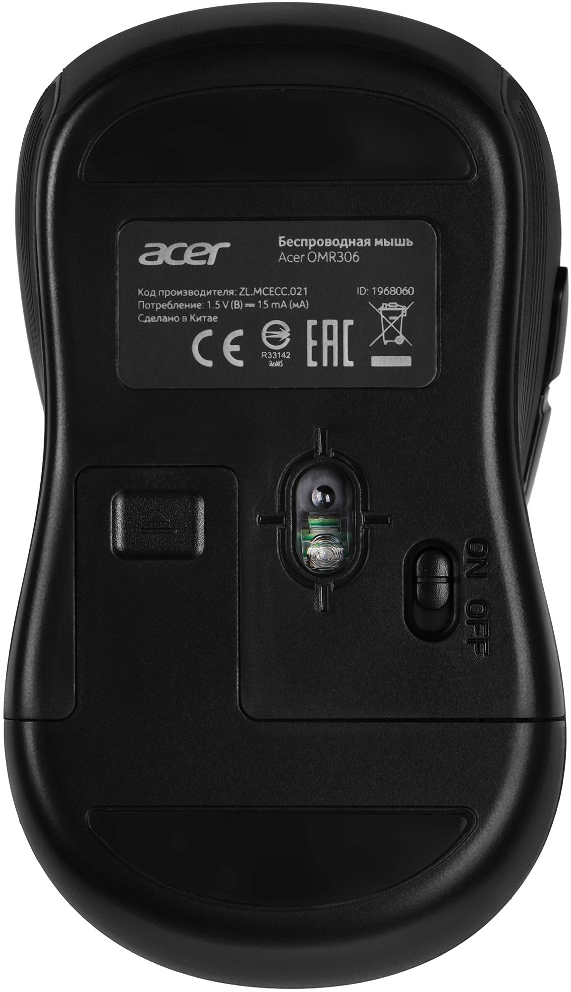 Мышь Acer OMR306 черный/серый оптическая (1600dpi) беспроводная USB (6but)