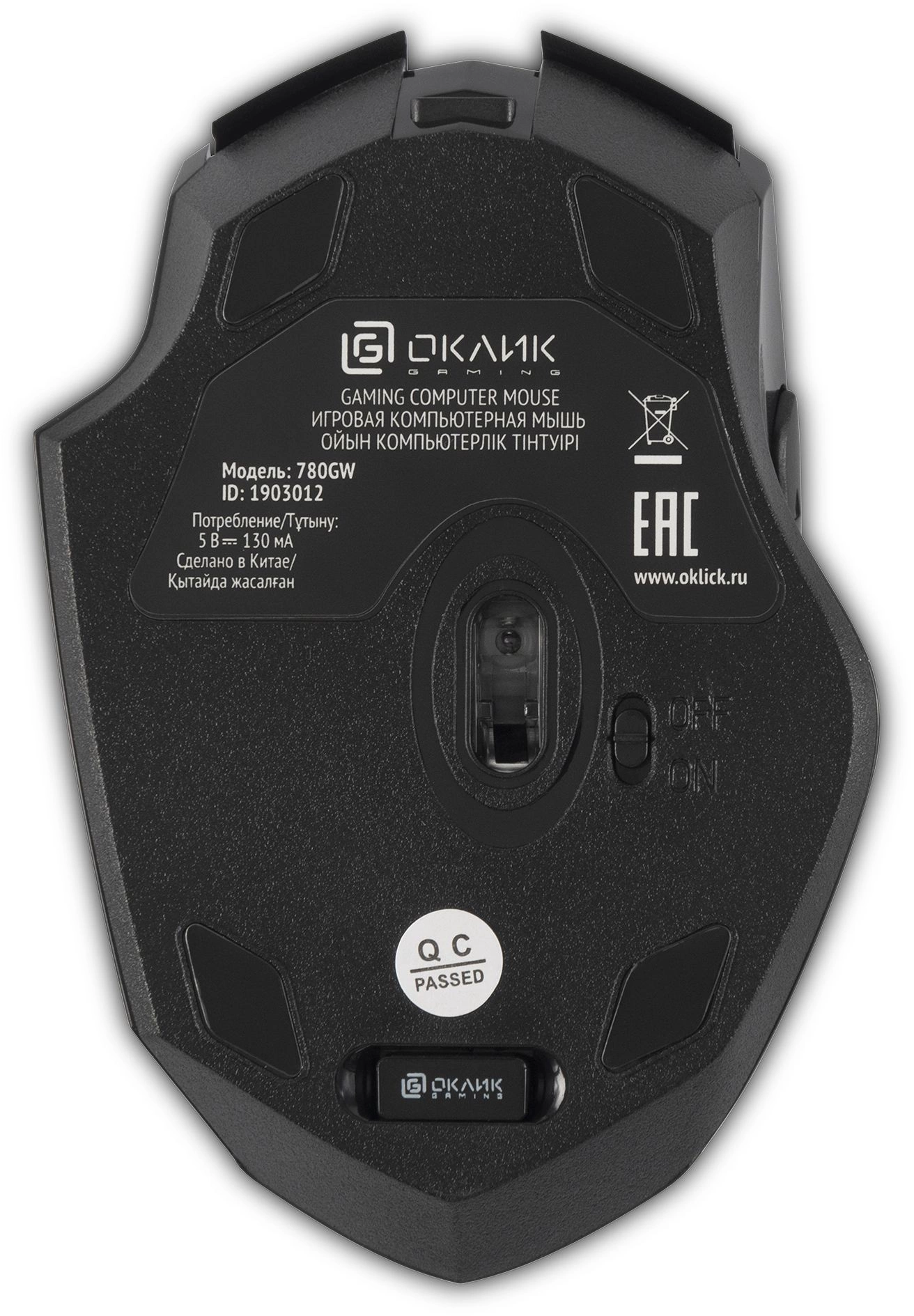 Мышь Оклик 780GW черный оптическая (3200dpi) беспроводная USB для ноутбука (6but)