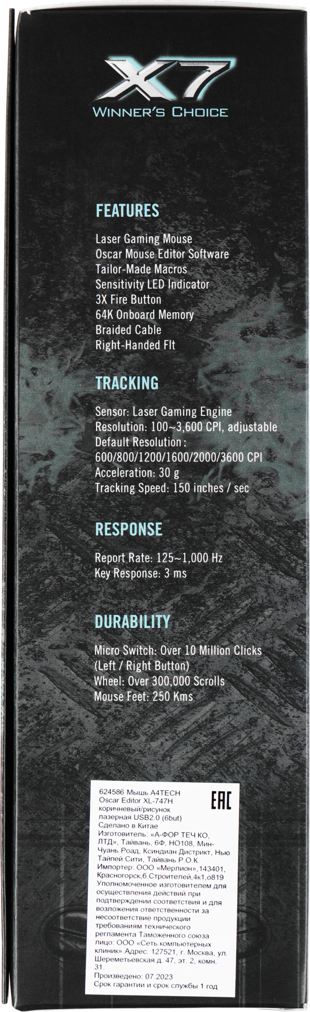 | Размеры мыши | 67x125x41мм |