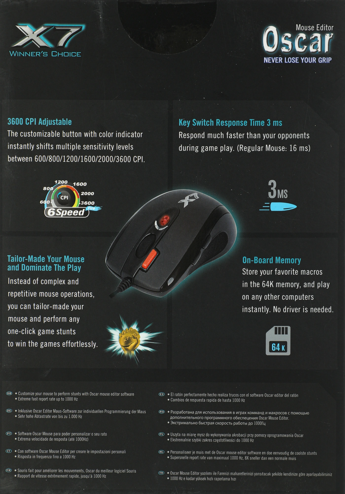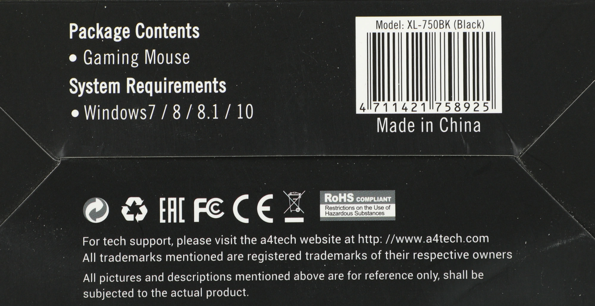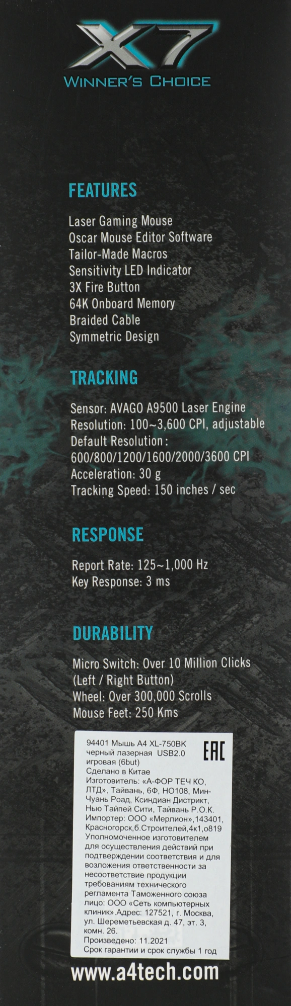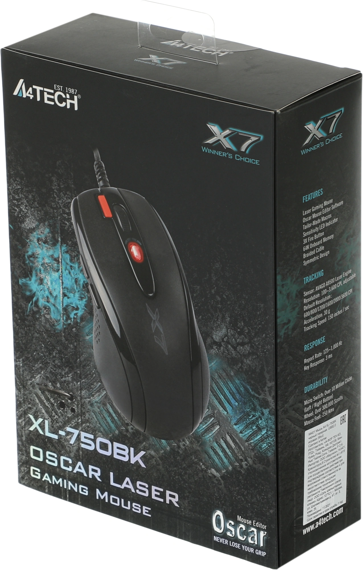 Мышь A4Tech XL-750BK черный лазерная (3600dpi) USB2.0 (6but)