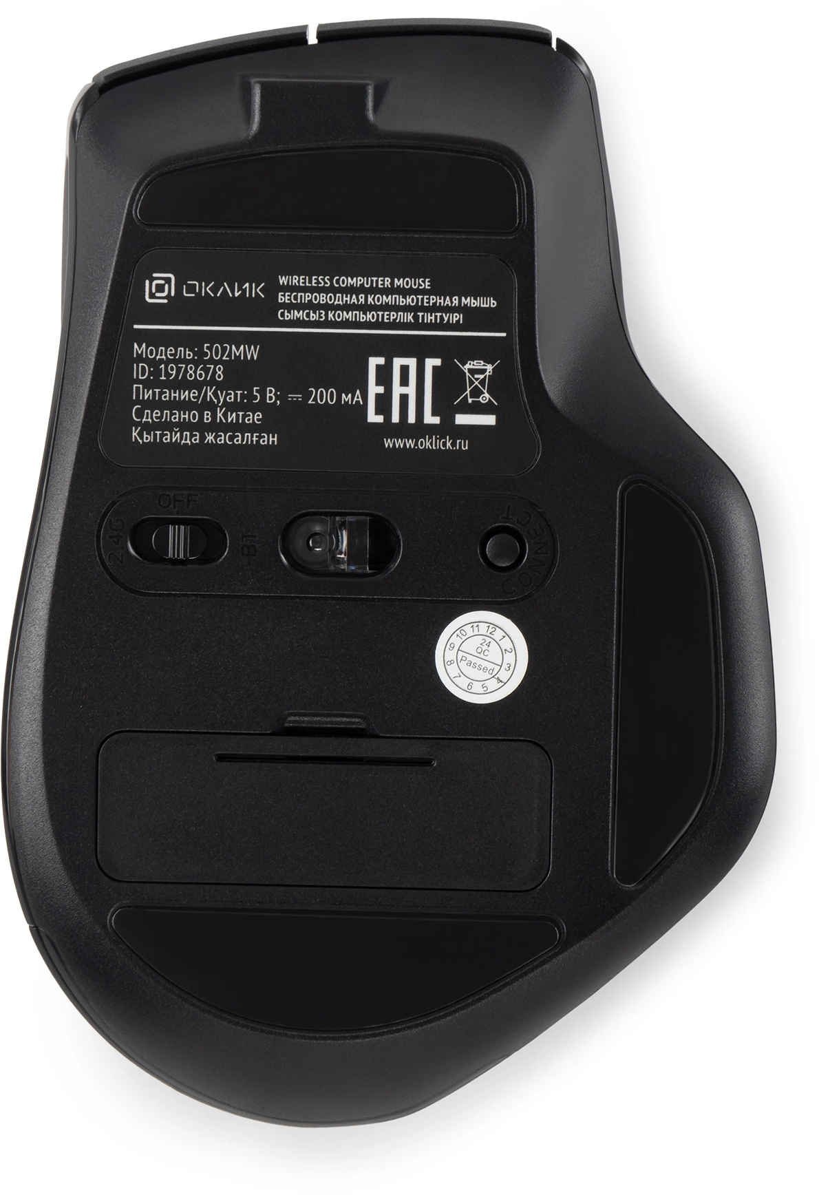 Мышь Оклик 502MW черный оптическая (2400dpi) silent беспроводная BT/Radio USB для ноутбука (9but)