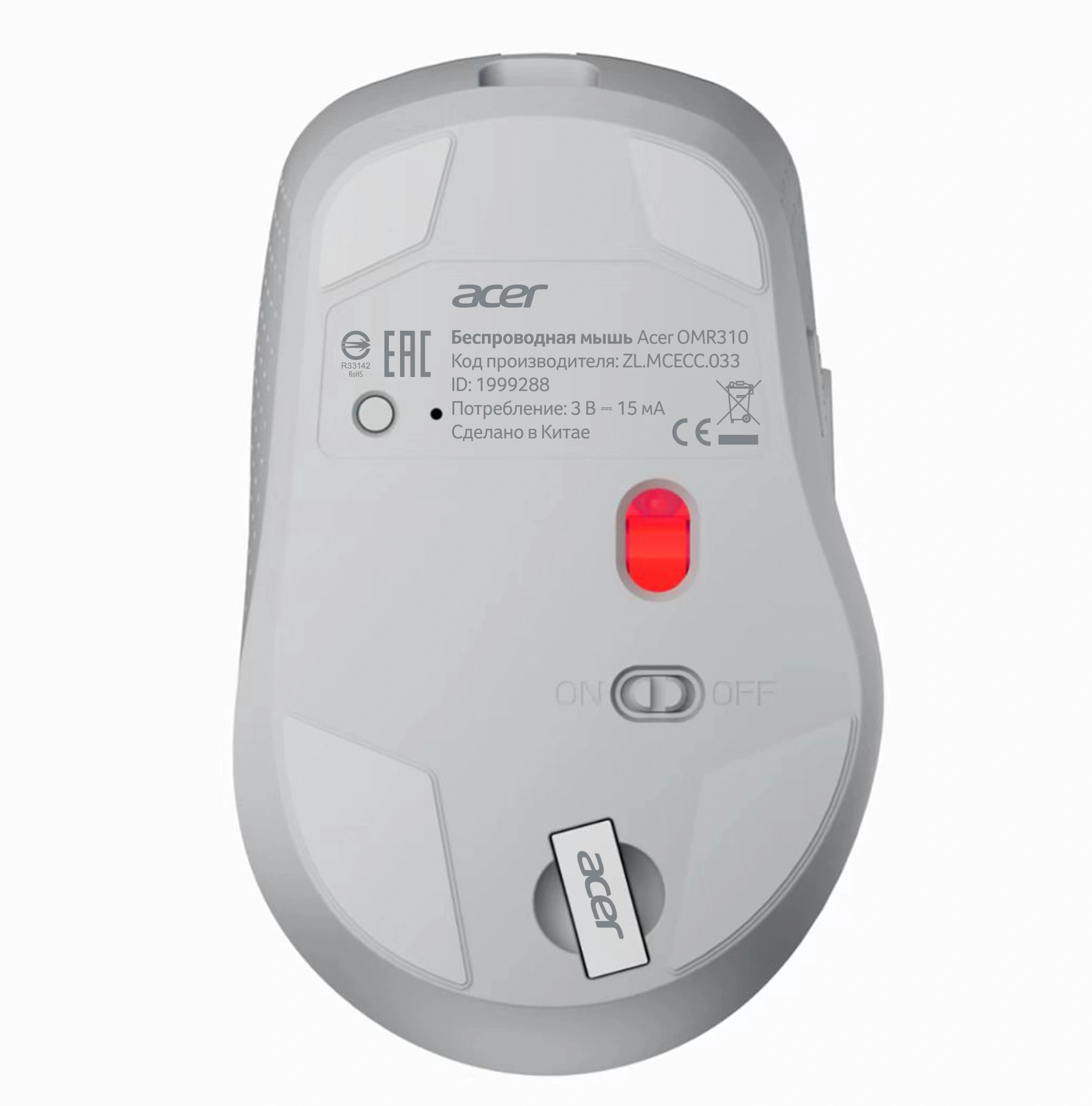 Мышь Acer OMR310 светло-серый оптическая 1600dpi беспров. BT/Radio USB (ZL.MCECC.033)
