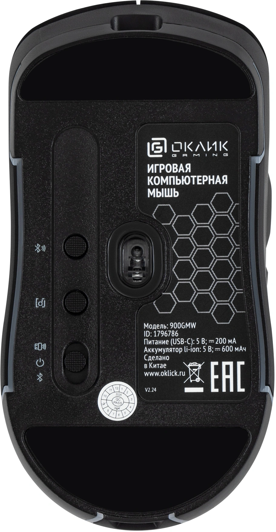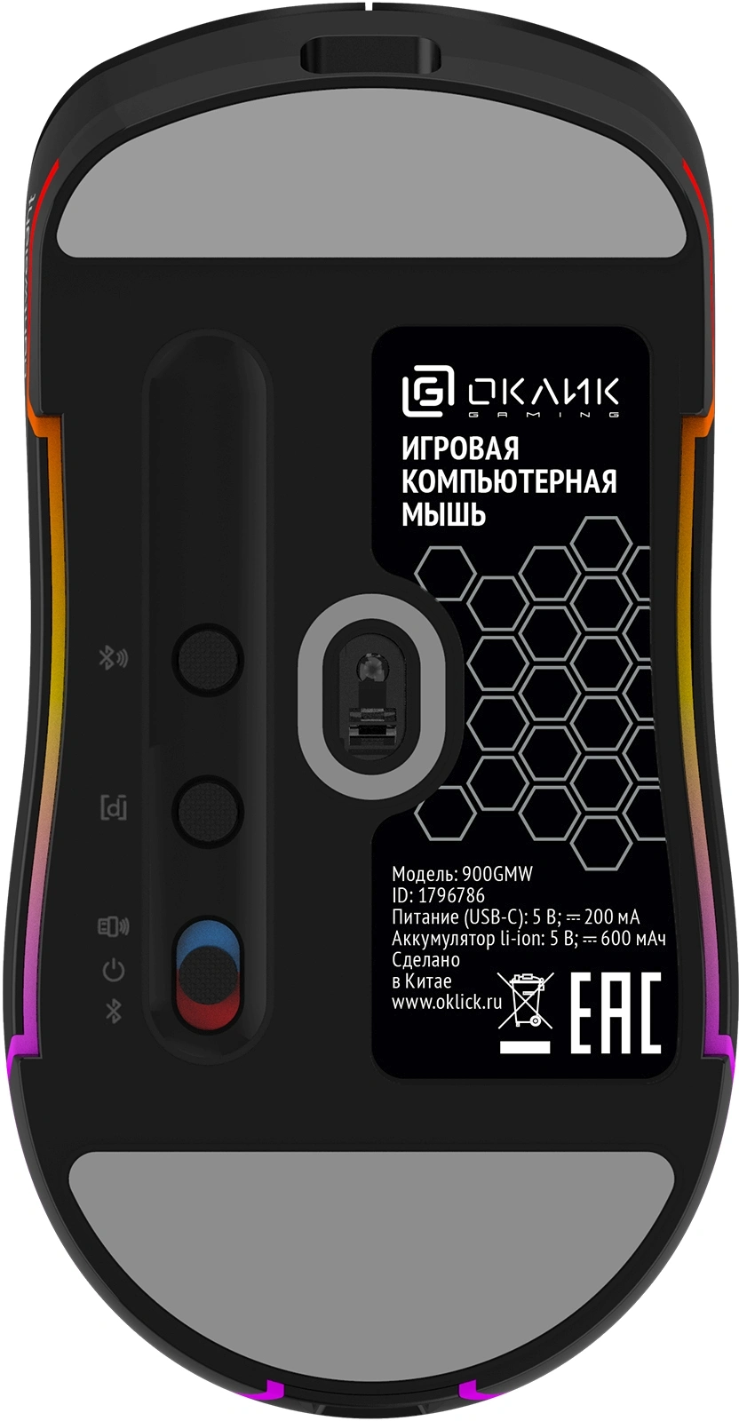 Мышь Оклик 900GMW черный оптическая 26000dpi беспров. BT/Radio USB для ноутбука 6but (1796786)