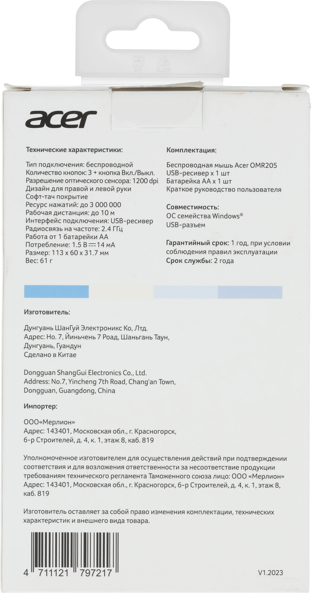 | Комплектация | Беспроводная мышь Батарейка АА х 1 шт USB-ресивер Краткое руководство пользователя |