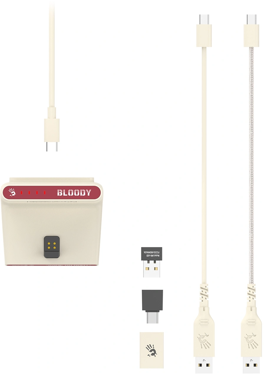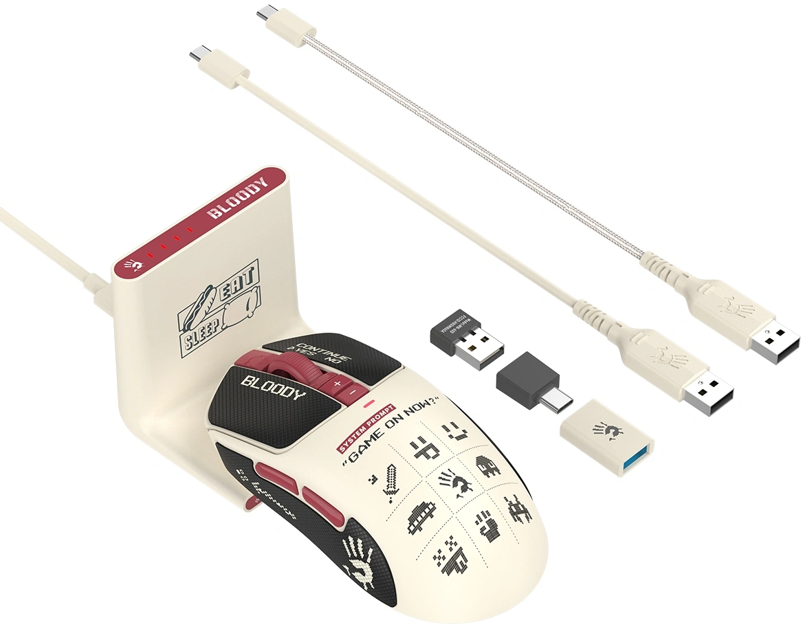 Мышь A4Tech Bloody R72 Ultra Duo белый/красный оптическая 20000dpi беспров. USB/USB-C 7but (R72 ULTRA DUO PIXELS RED)