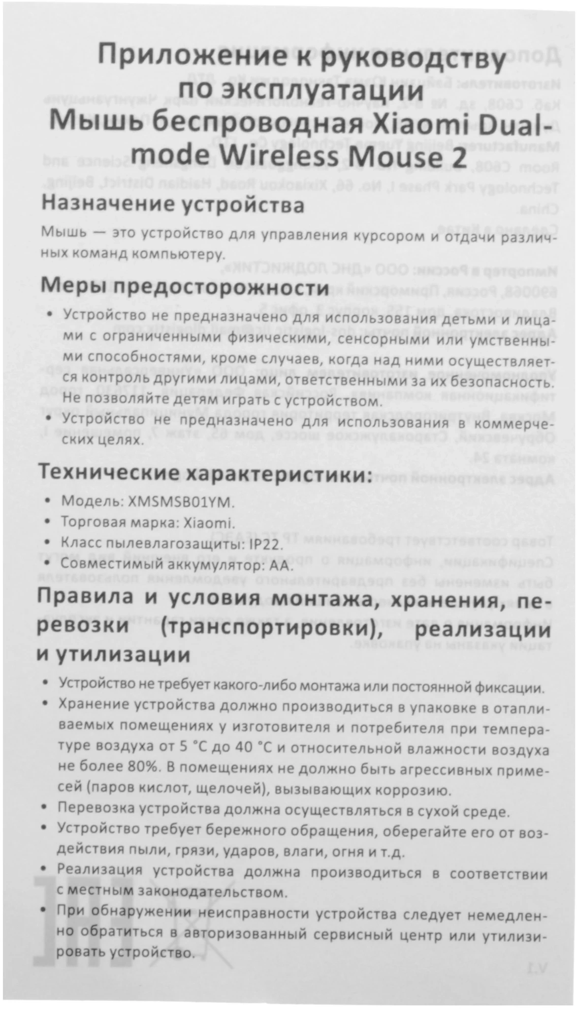 | Модель | Dual-mode Wireless Mouse 2 |