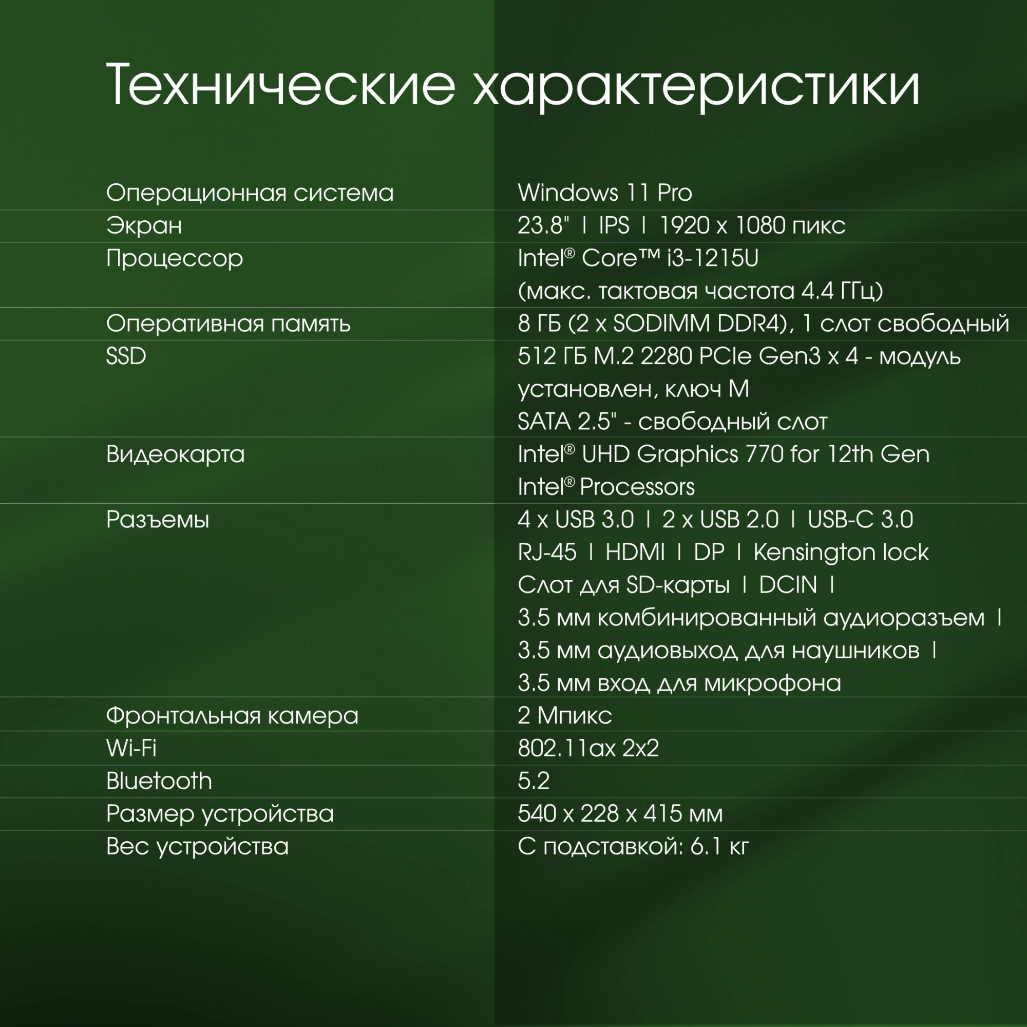 | Диагональ экрана | 23.8 |