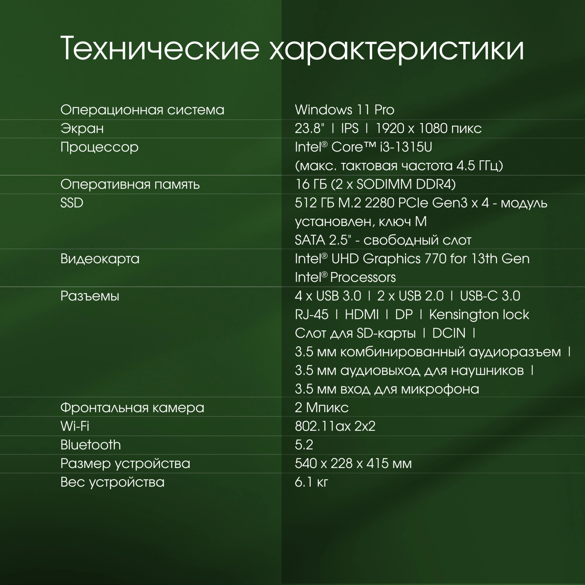 | Операционная система компьютера | Windows 11 Pro |
