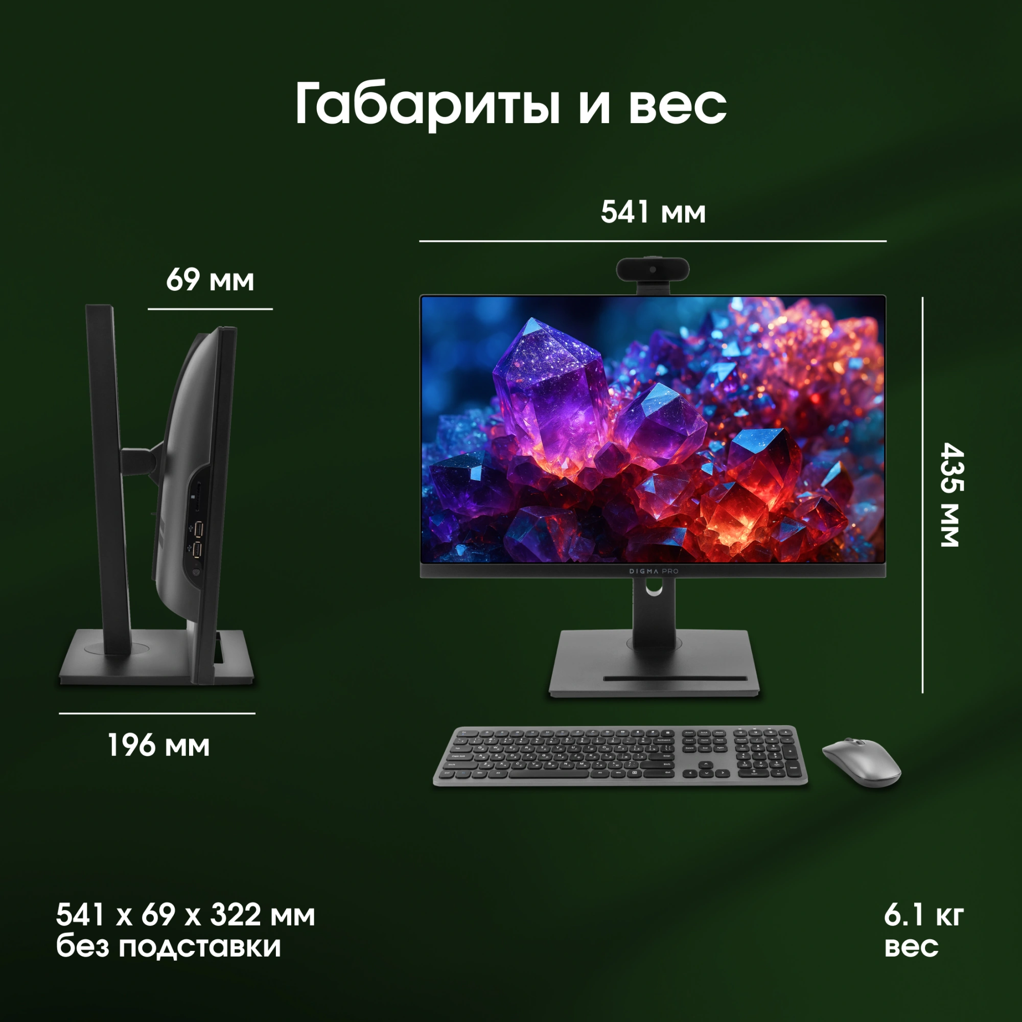 Моноблок Digma Pro Vision 23.8" Full HD Ryzen 3 5425U (2.7) 8Gb SSD256Gb RGr CR Windows 11 Pro Eth WiFi BT 90W клавиатура мышь Cam черный 1920x1080