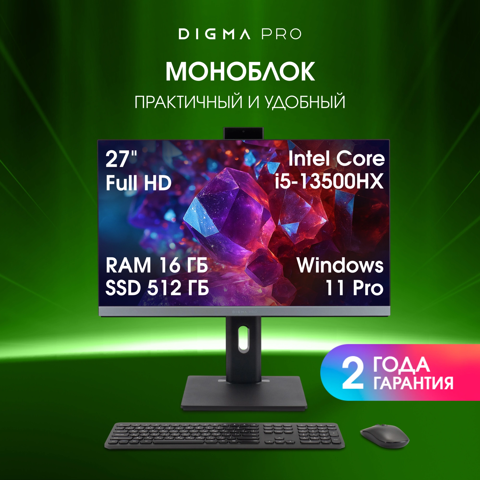 Моноблок Digma Pro Unity 27" Full HD i5 13500HX (2.5) 16Gb SSD512Gb UHDG 730 CR Windows 11 Pro GbitEth WiFi BT 90W клавиатура мышь Cam серый/черный 1920x1080