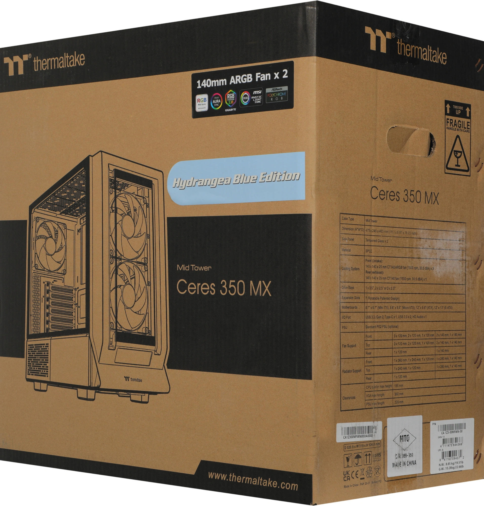 Корпус Thermaltake Ceres 350 MX Hydrangea голубой без БП ATX 3x140mm 2xUSB3.0 audio bott PSU