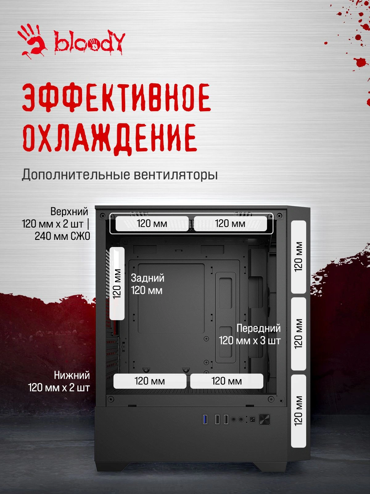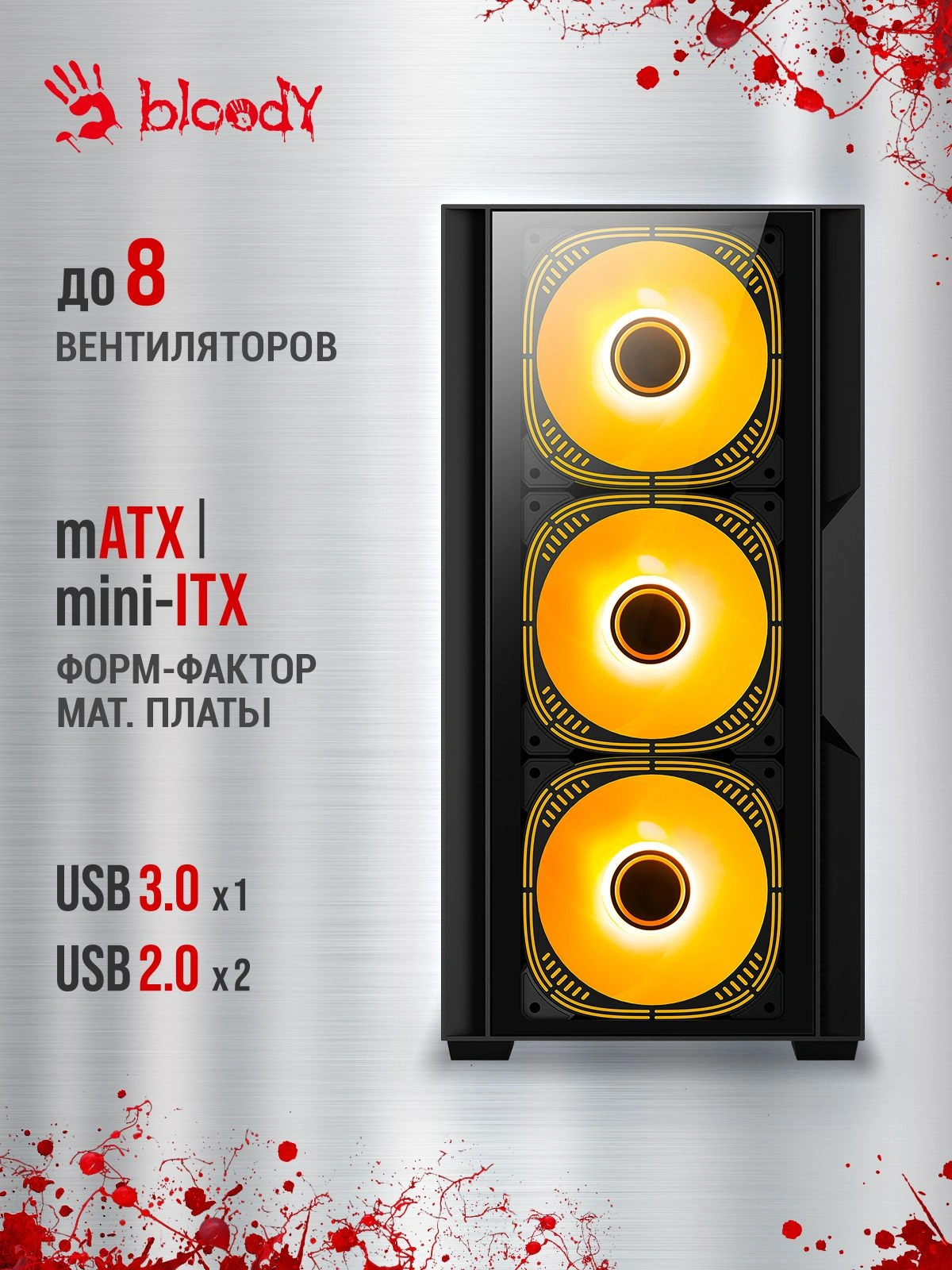 Корпус Bloody CC-123 черный без БП mATX 8x120mm 2xUSB2.0 1xUSB3.0 audio bott PSU