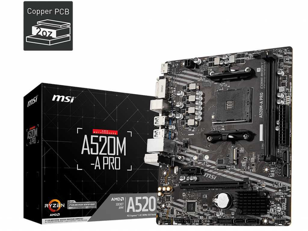 Материнская плата MSI A520M-A PRO Soc-AM4 AMD A520 2xDDR4 mATX AC`97 8ch(7.1) GbLAN RAID+DVI+HDMI