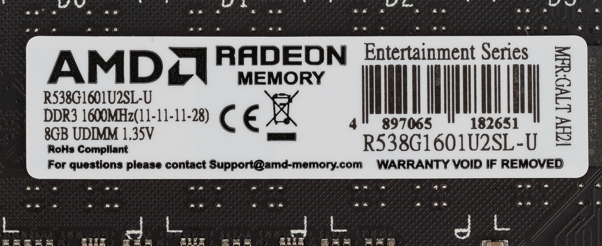 Память DDR3 8Gb 1600MHz AMD R538G1601U2SL-U RTL PC3-12800 CL11 LONG DIMM 240-pin 1.35В