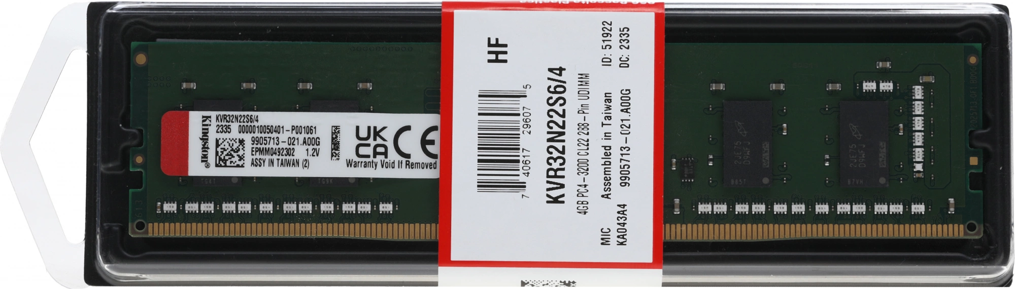 Память DDR4 4Gb 3200MHz Kingston KVR32N22S6/4 VALUERAM RTL PC4-25600 CL22 DIMM 288-pin 1.2В single rank Ret
