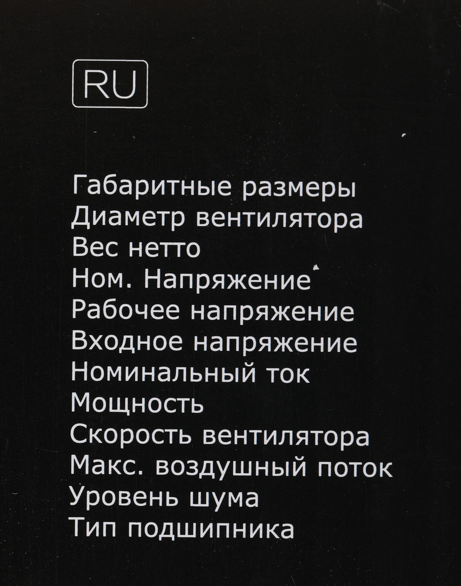 | Скорость вращения вентилятора | 800-2500об/мин |