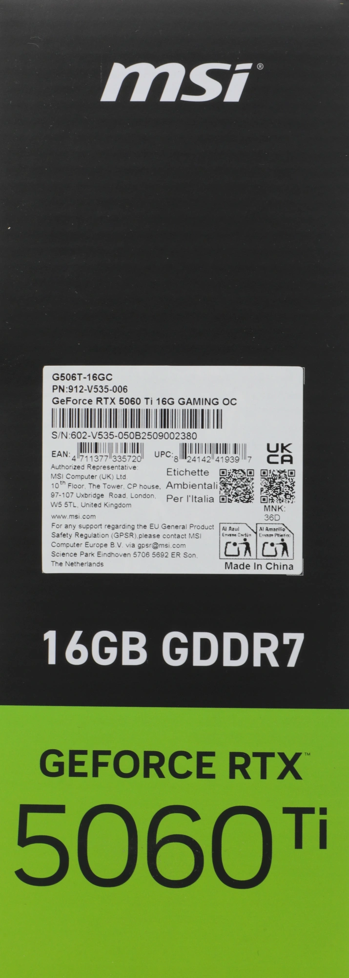 | PartNumber/Артикул Производителя | RTX 5060 TI 16G GAMING OC |